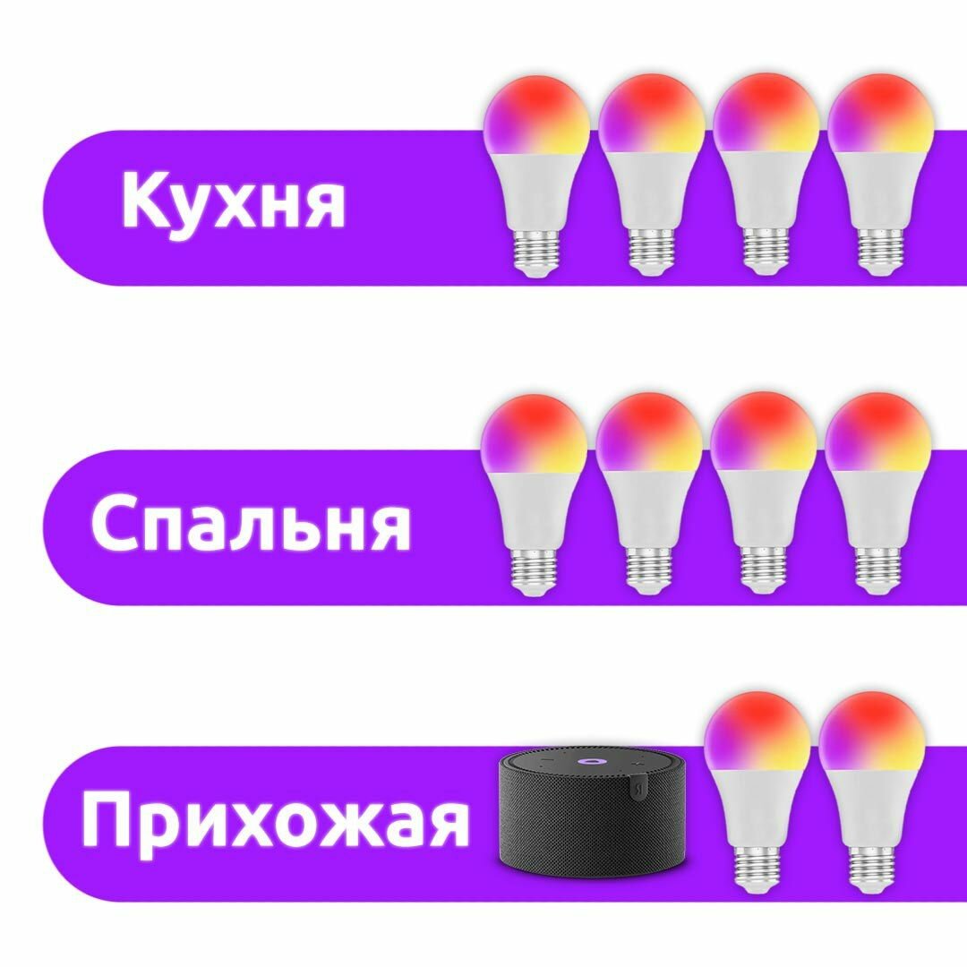 | Подробная комплектация | умная колонка Яндекс Станция Мини - 1 шт., умная светодиодная лампочка RGB с Wi-Fi Smart Bulb E27 10W - 10 шт. |