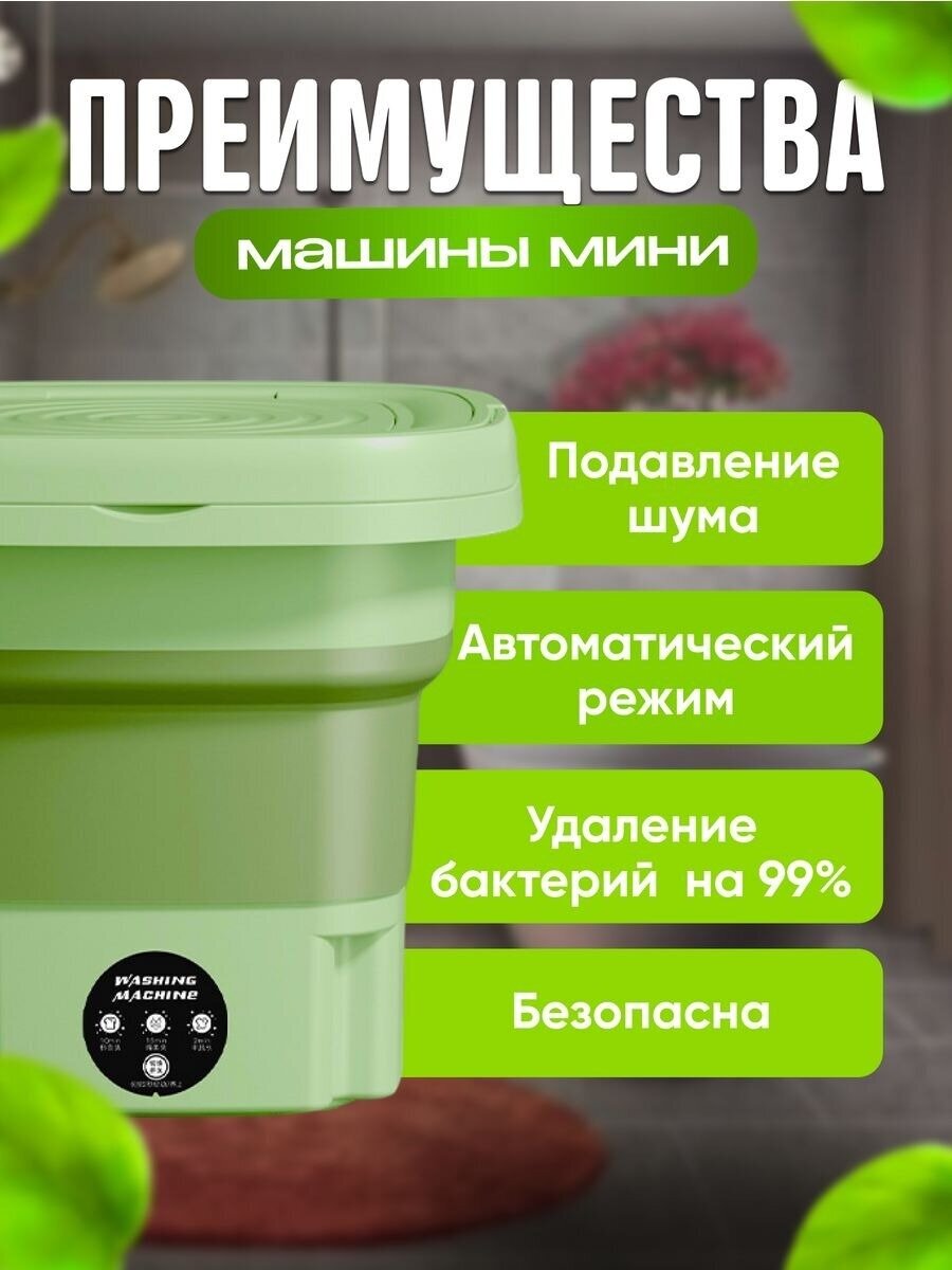 Портативная складная стиральная машинка-ведро / Мини-стиральная машина для дома и дачи / Компактная машина для стирки с 3 режимами / 12 литров / зеленый интересное: