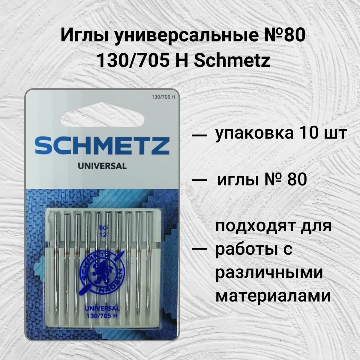 Ниже Вы можете прочитать отзывы на Швейные иглы стандартные № 80, 10 штук, Schmetz 130/705Н для швейных машин, ознакомится с подробными характеристиками, посмотреть интересные обзоры и фотографии на Швейные иглы стандартные № 80, 10 штук, Schmetz 130/705Н для швейных машин.