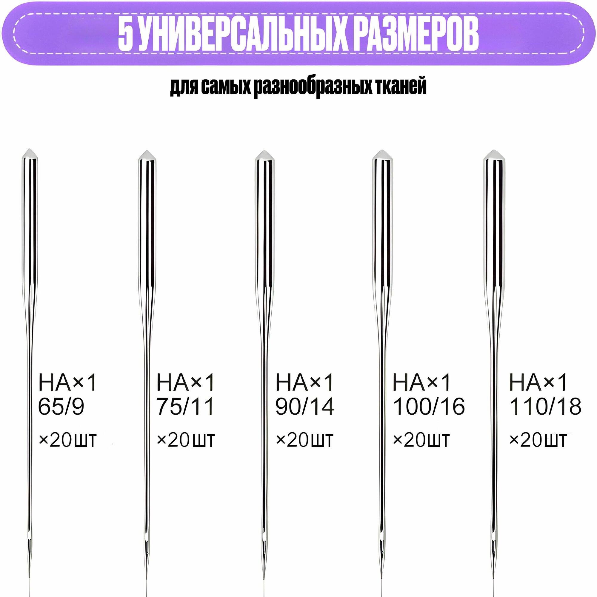 Иглы для швейных машин 100ШТ, Универсальные иглы для любых швейных машин HAX1 65/9, 75/11, 90/14, 100/16, 110/18 интересное: