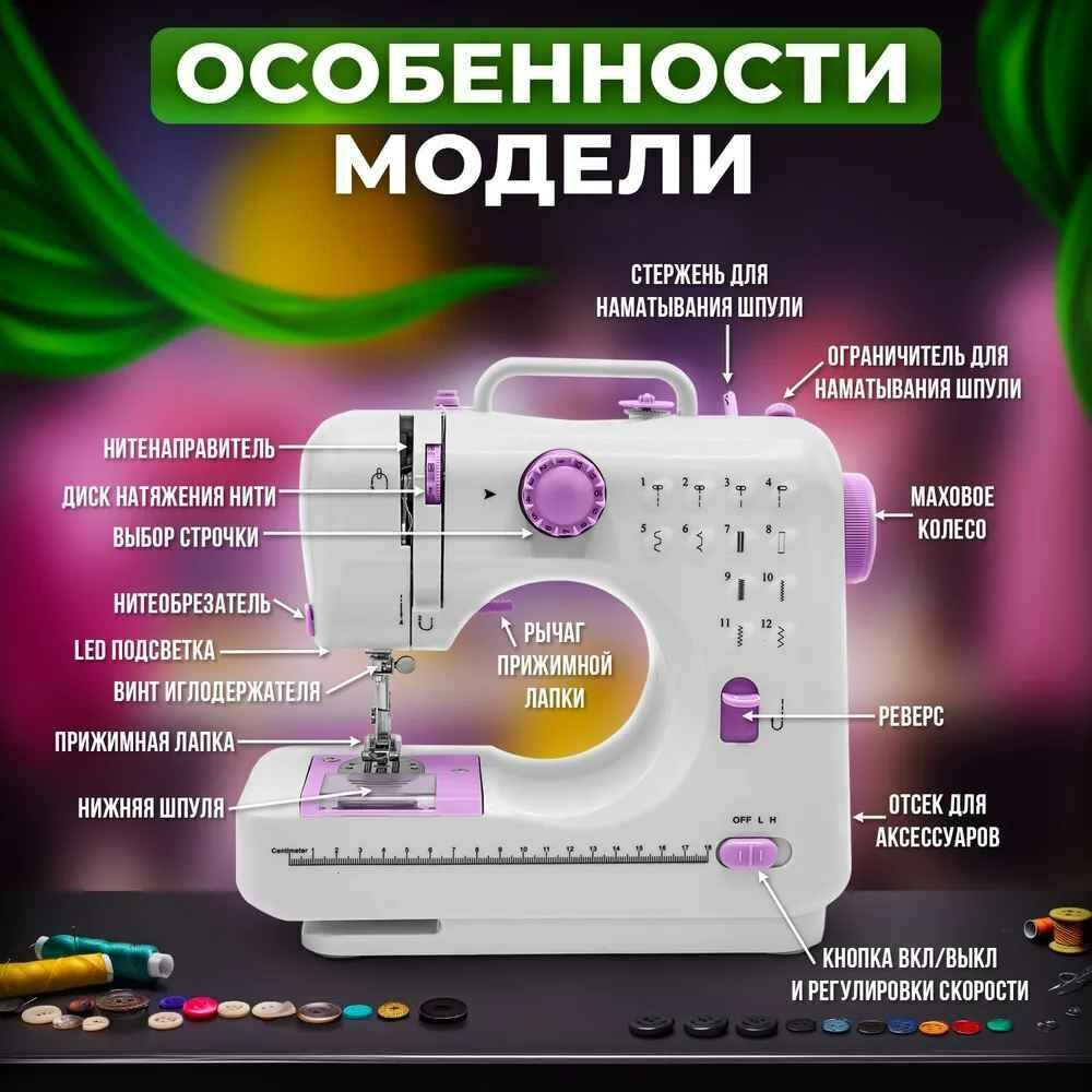 | Особенности конструкции | нитевдеватель, отсек для аксессуаров, подсветка |