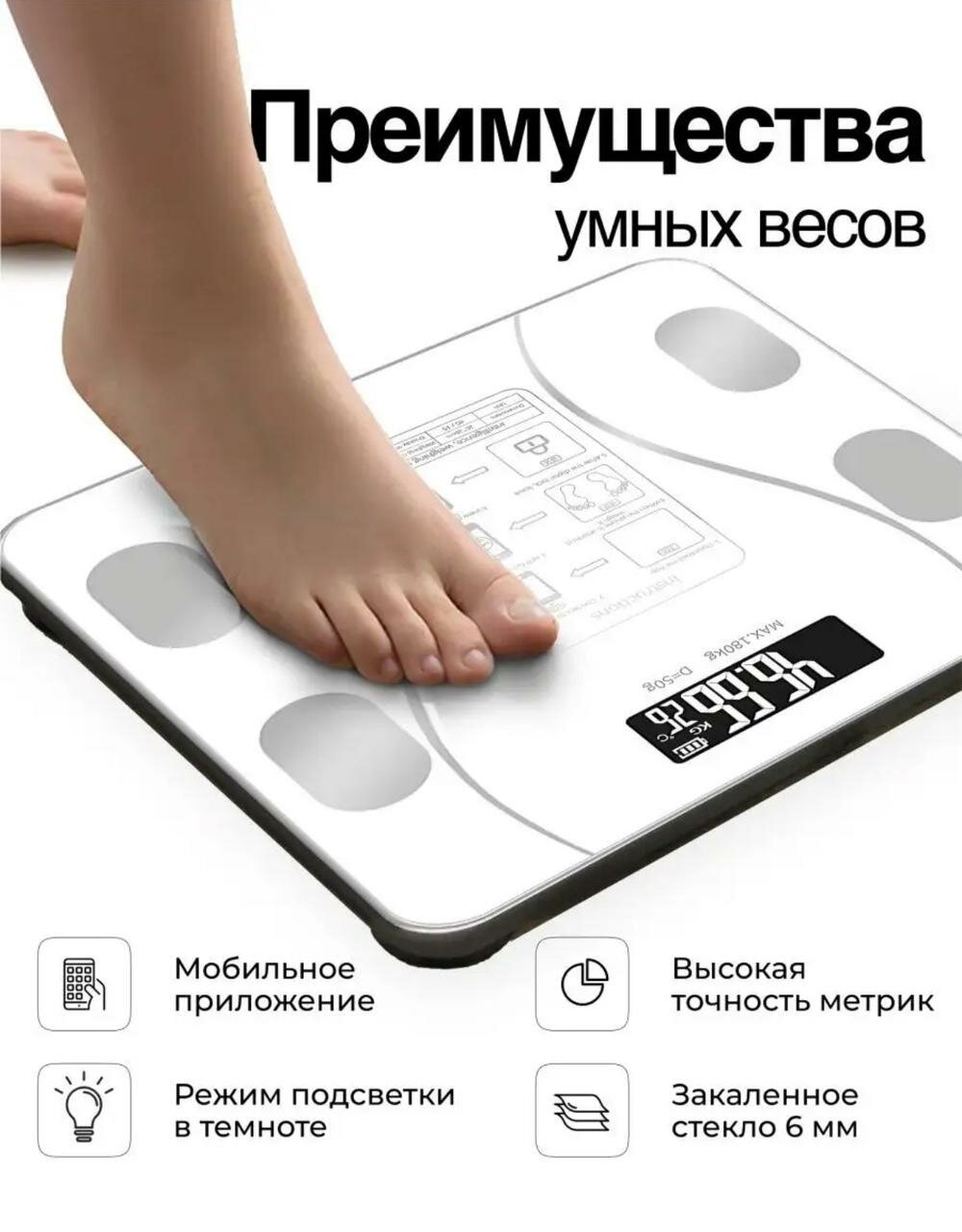 Напольные умные весы c bmi, электронные напольные весы для Xiaomi, iPhone, Android, Серебристые интересное: