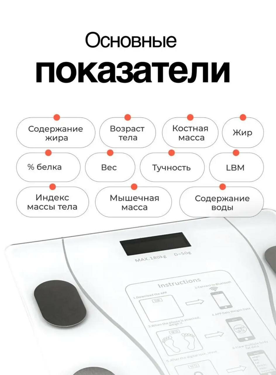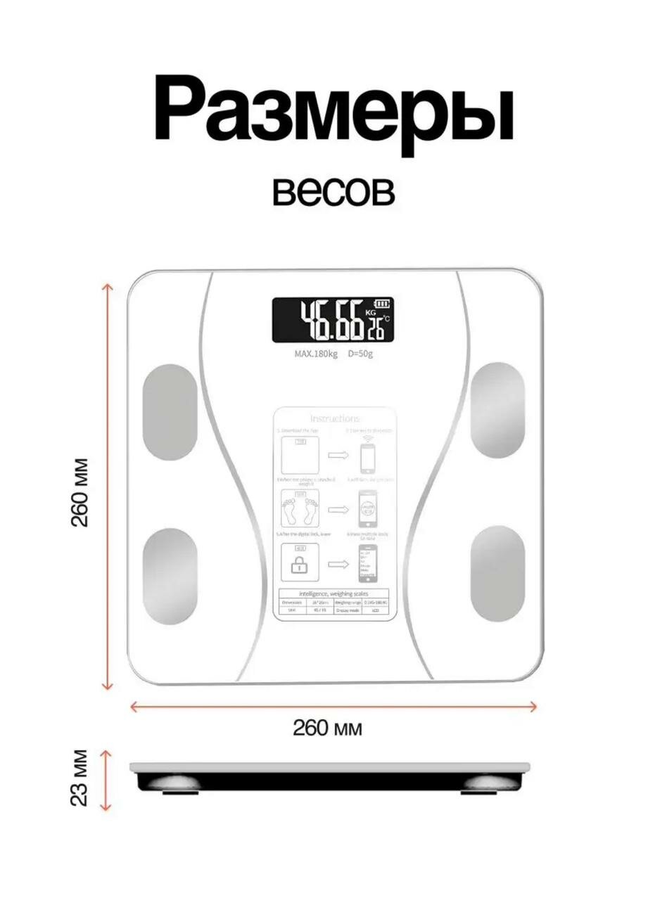 Напольные умные весы с расчётом 12 показателей качества тела совместимые для Android, IOS Черный