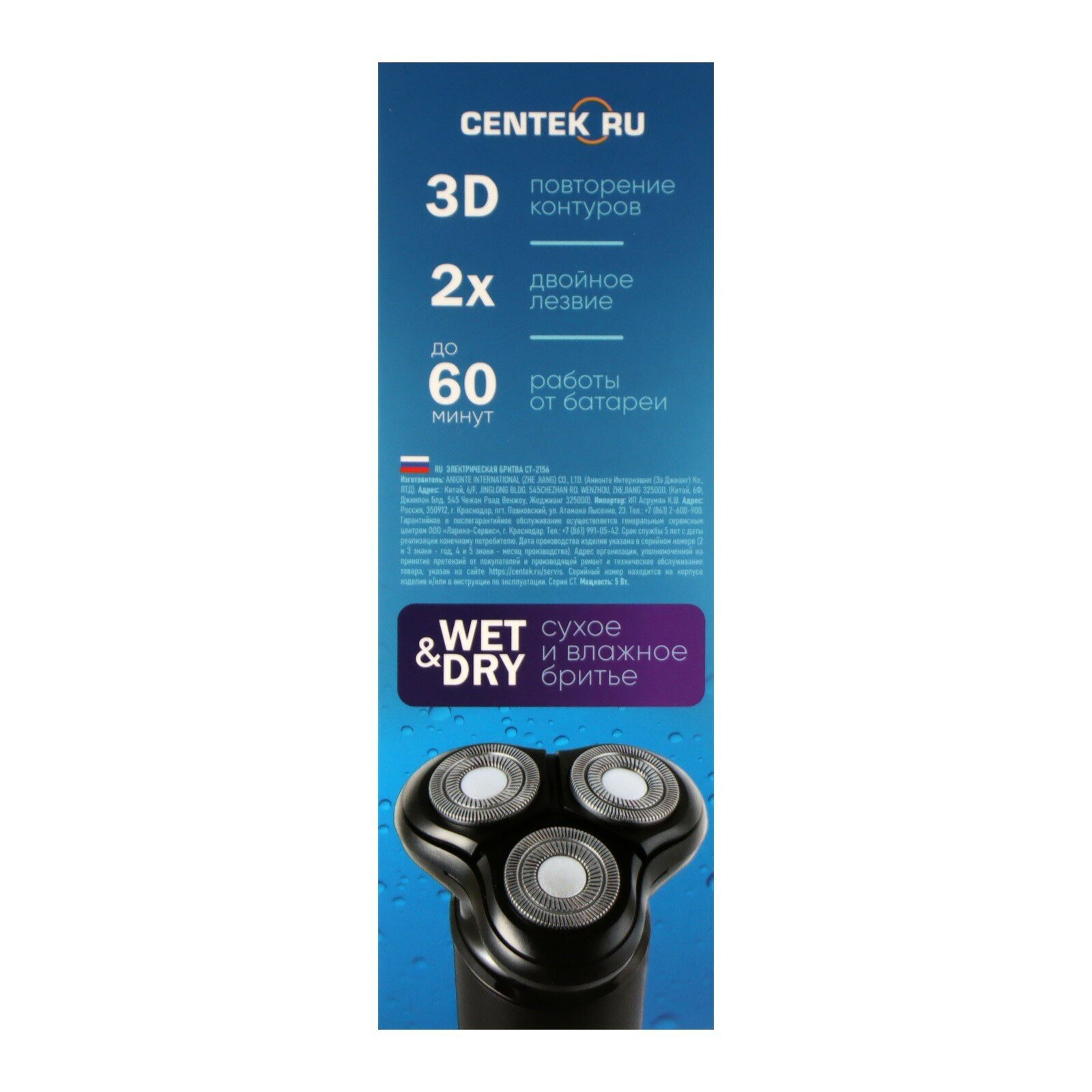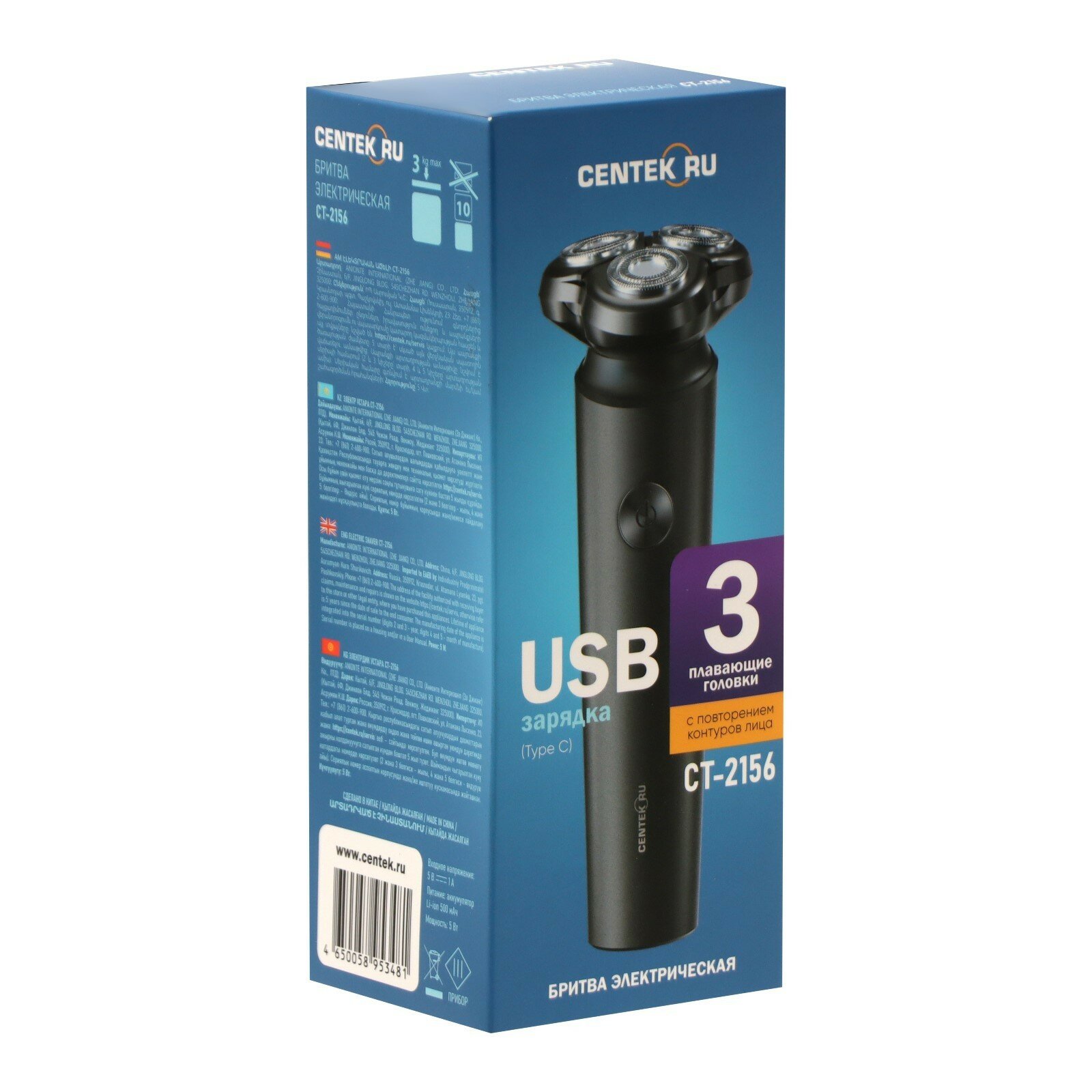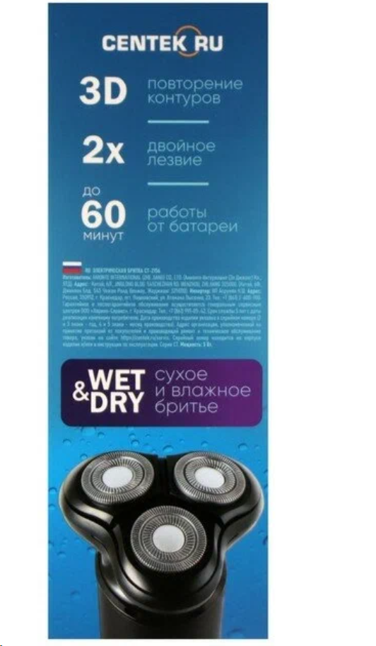 Ниже Вы можете прочитать отзывы на Электробритва Centek CT-2156, 5 Вт, роторная, 3 головки, влажное бритьё, от АКБ, ознакомится с подробными характеристиками, посмотреть интересные обзоры и фотографии на Электробритва Centek CT-2156, 5 Вт, роторная, 3 головки, влажное бритьё, от АКБ.