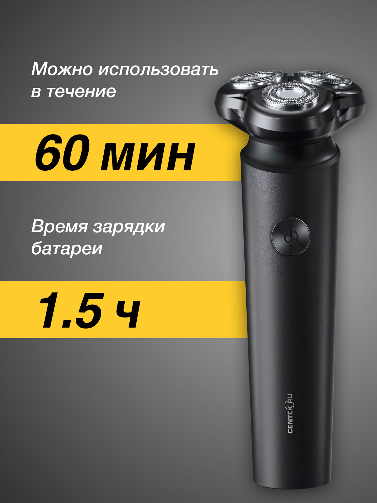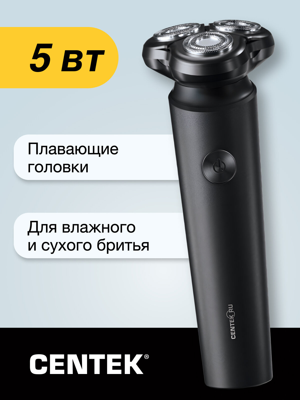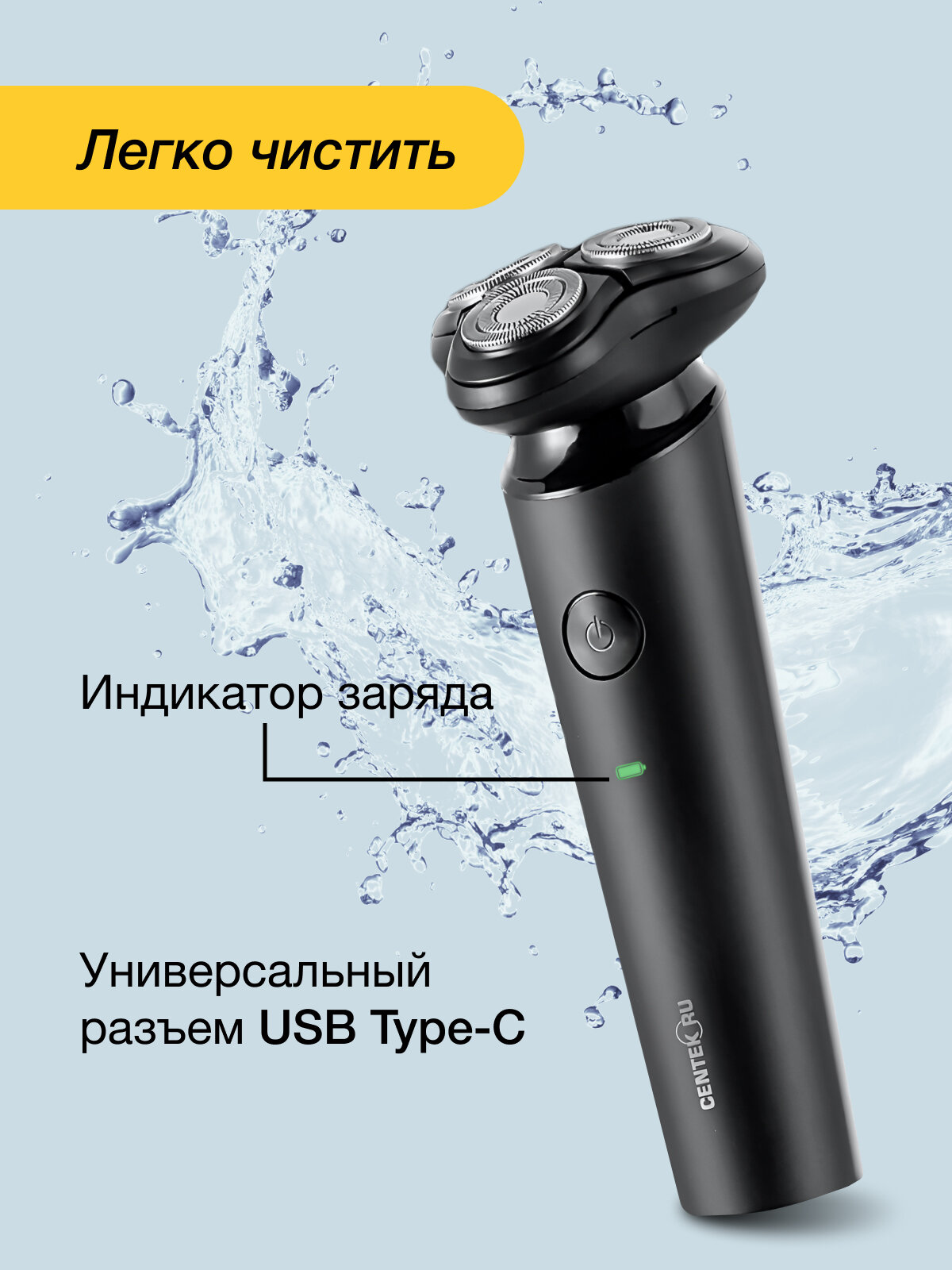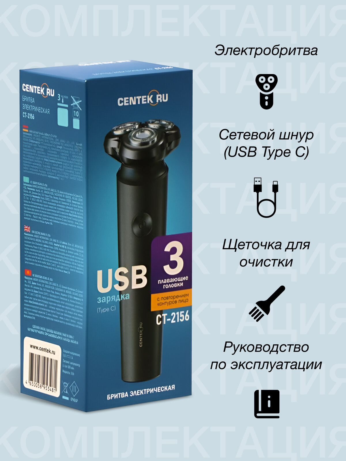 Электробритва Centek CT-2156, 5 Вт, роторная, 3 головки, влажное бритьё, от АКБ интересное: