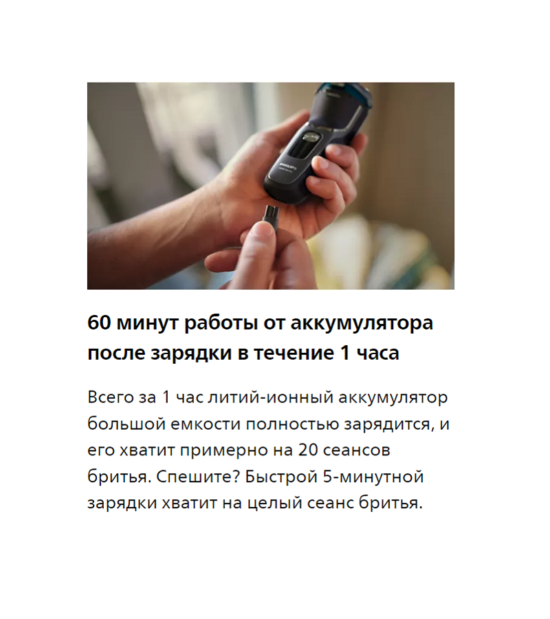 | Подробная комплектация | электробритва, защитная крышка, зарядное устройство, чехол для путешествий, встроенный триммер, инструкция |