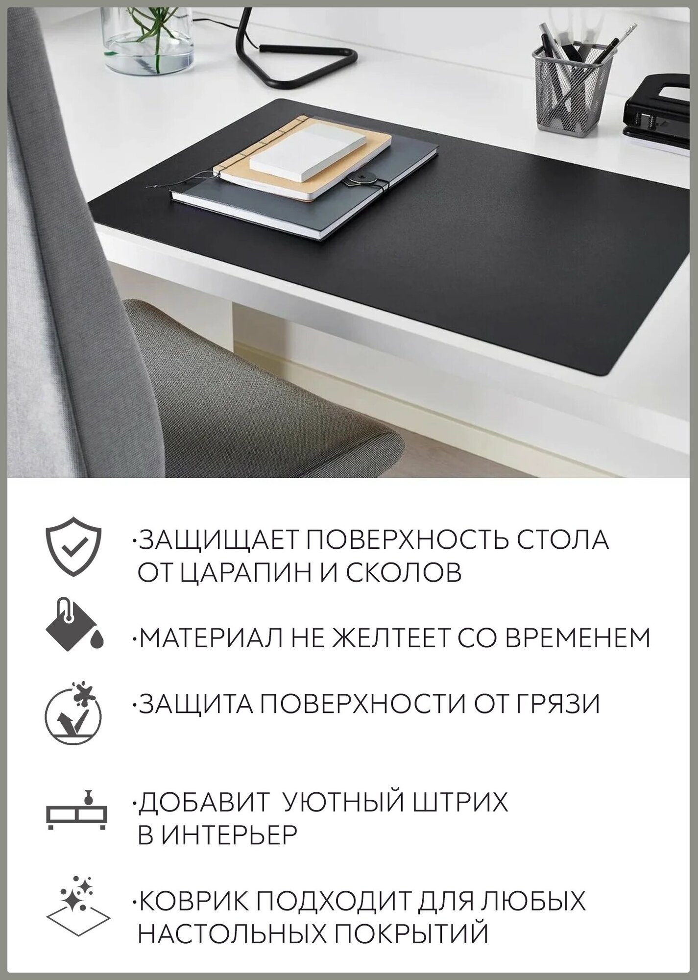 Коврик защитный настольный 55х75 см цвет черный матовый на стол письменный от царапин, подложка интересное: