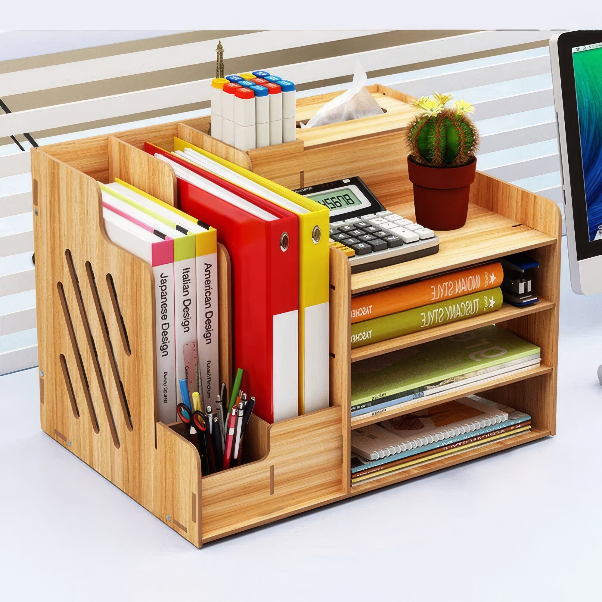 Настольный органайзер большой для канцелярских принадлежностей и папок интересное: