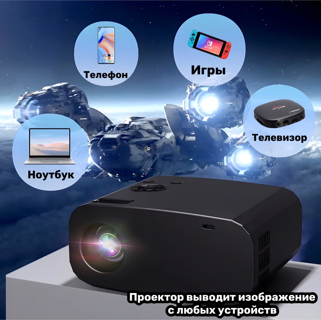 Проектор со встроенным HDMI входом для фильмов и игр, дублирование экрана, Android интересное: