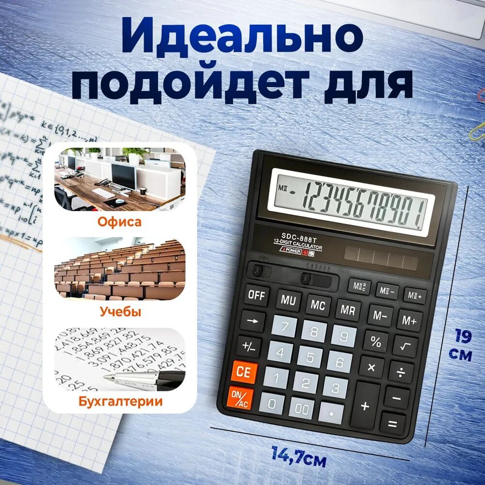 Калькулятор настольный SDC-888T, 12-разрядный, двойное питание интересное: