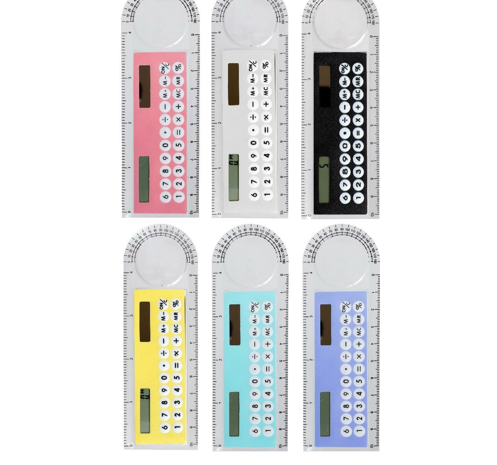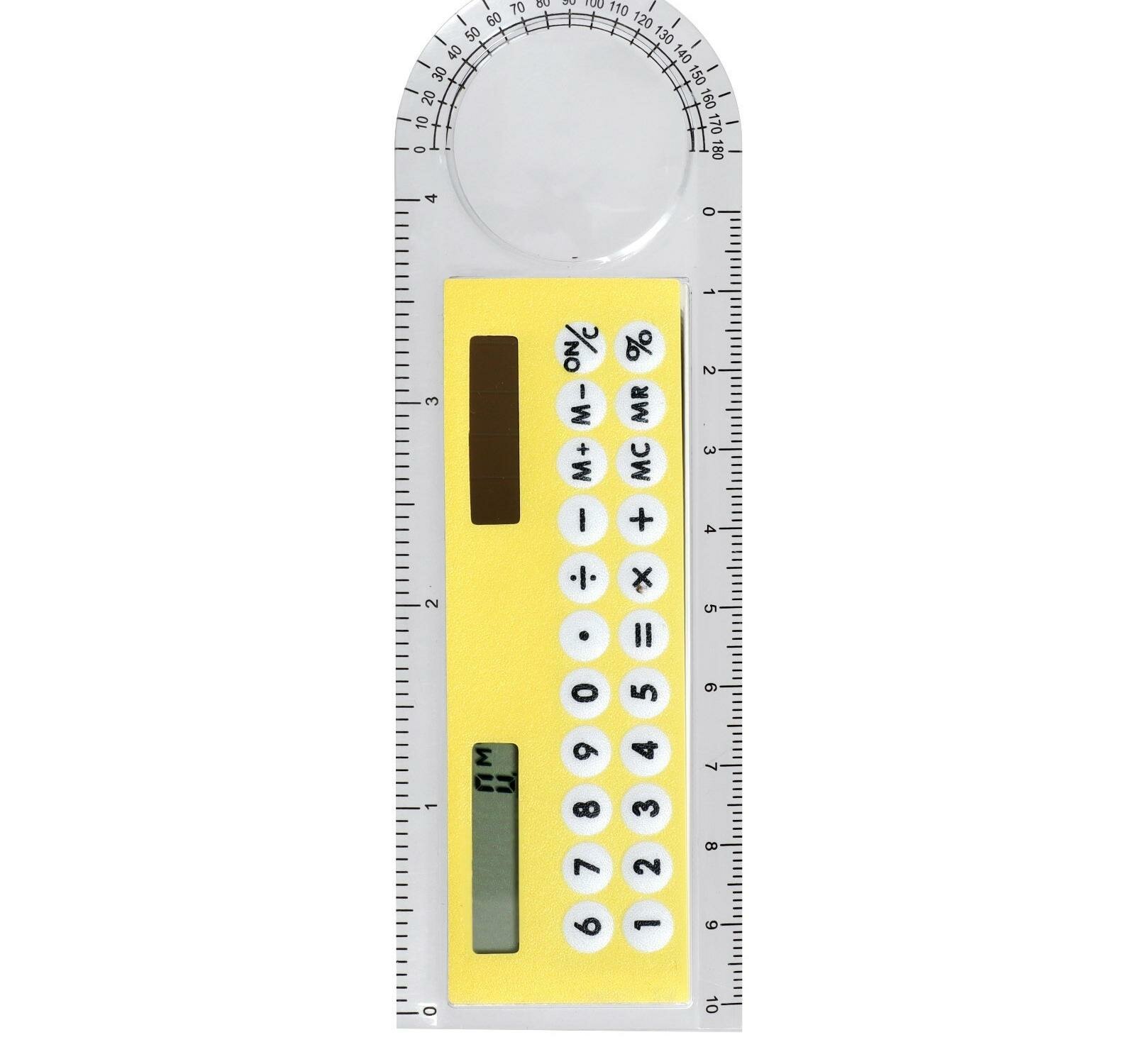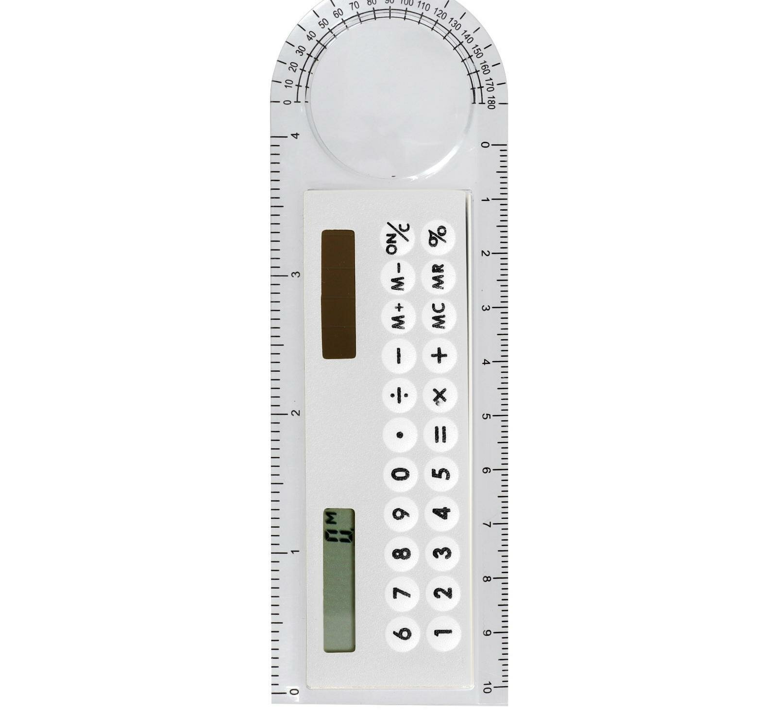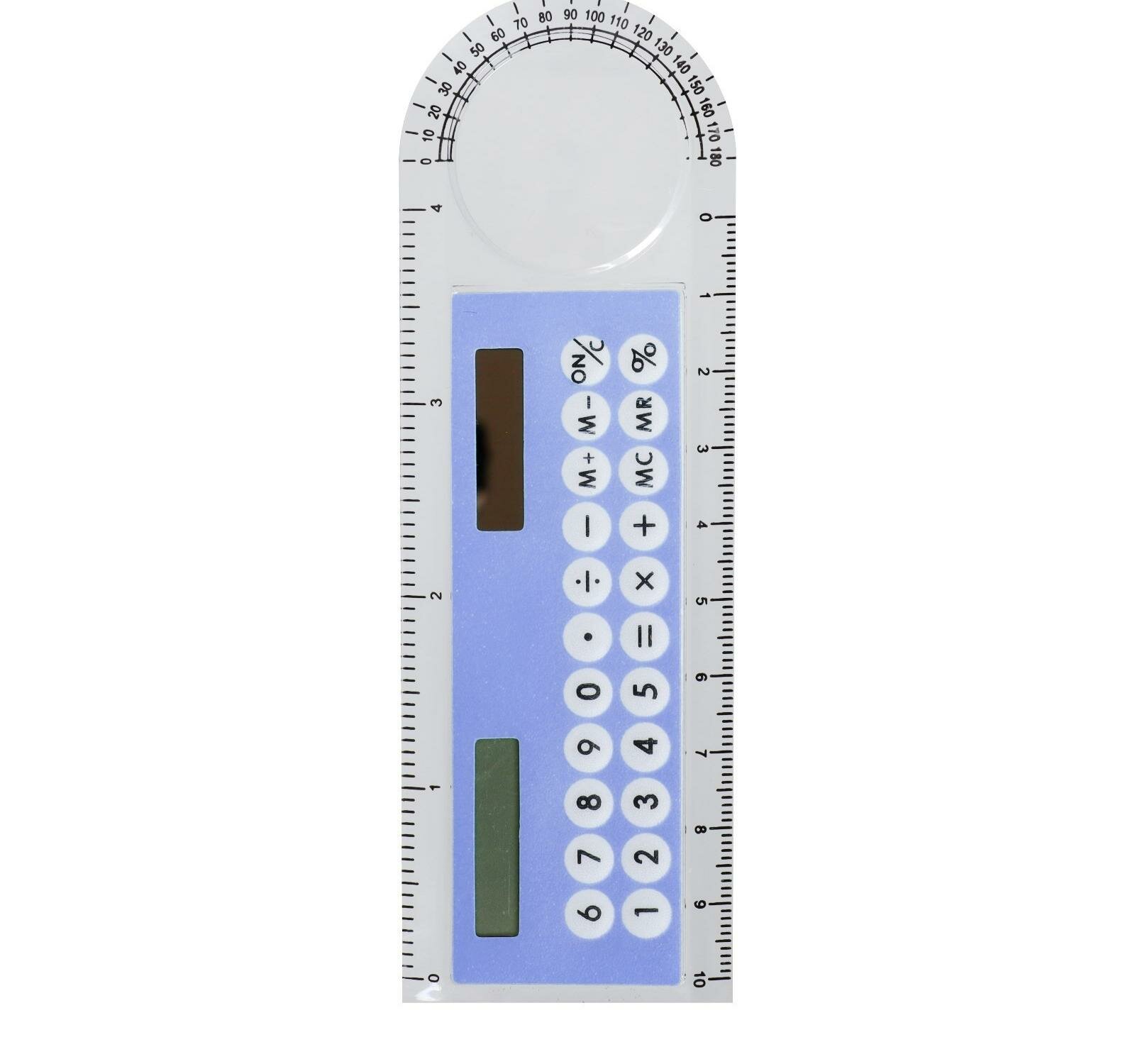 Купить Калькулятор-линейка 10см 8-разрядный корпус прозрачный,с транспортиром, работает от света 3854080