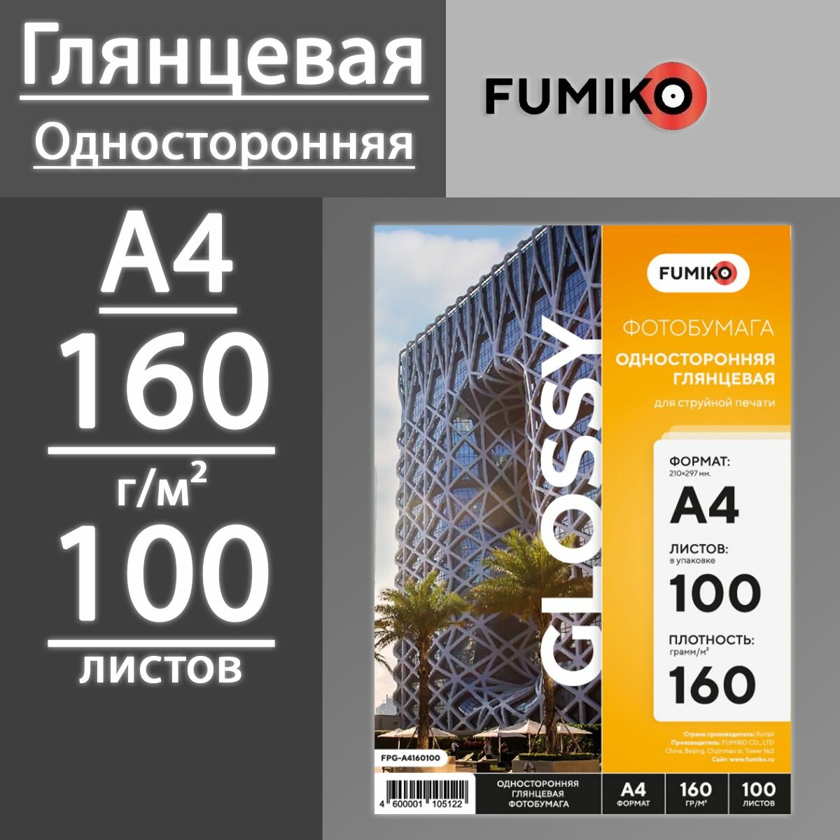 Фотобумага FUMIKO глянцевая односторонняя 160 г, А4, 100 листов