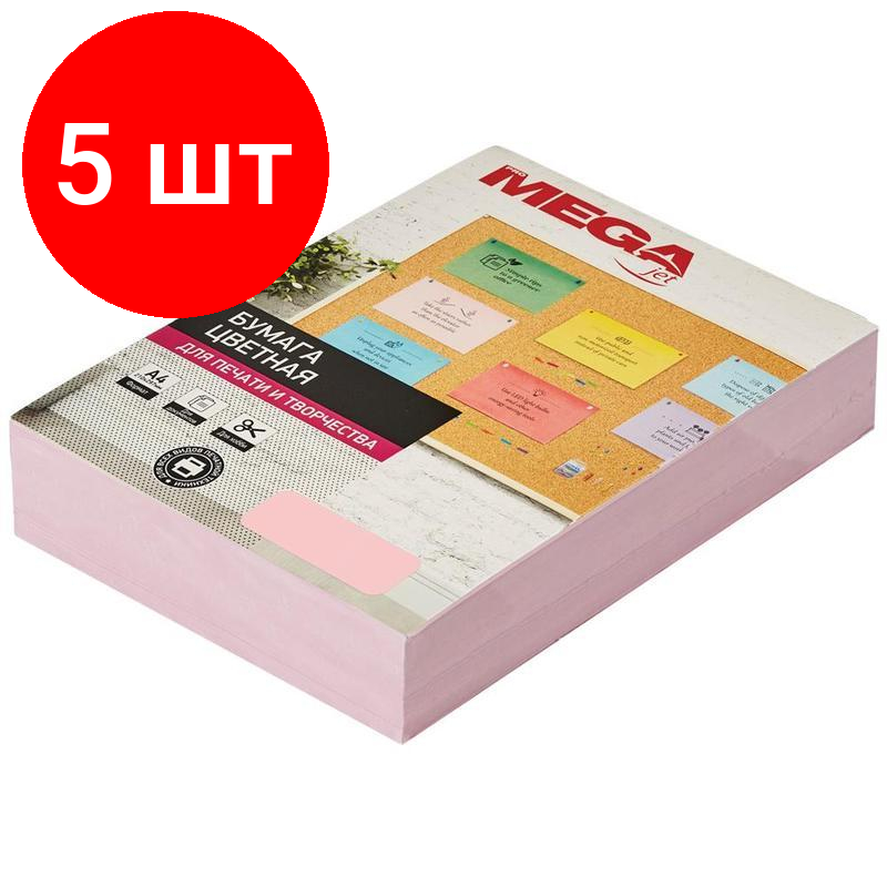 Комплект 5 упаковок, Бумага цветная ProMEGA jet (А4.160г, розовая пастель) 250л/уп интересное: