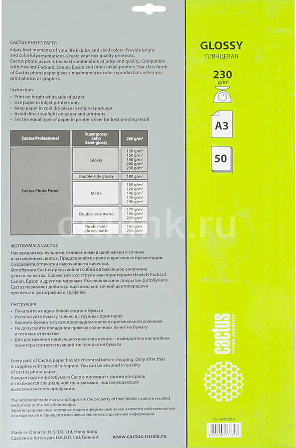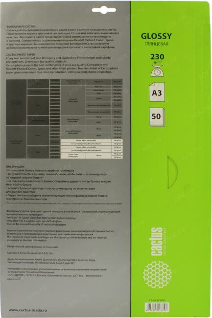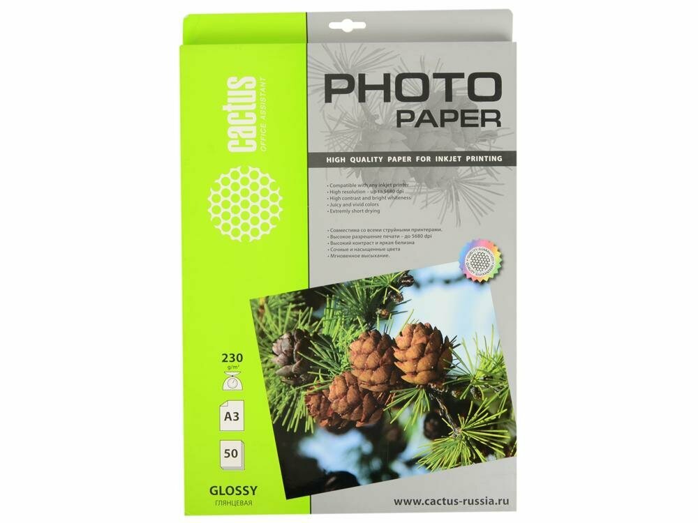 Фотобумага для струйной печати А3, 50 листов Cactus, 230 г/м2, односторонняя, глянцевая интересное:
