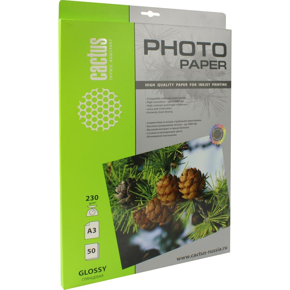 Купить Фотобумага для струйной печати А3, 50 листов Cactus, 230 г/м2, односторонняя, глянцевая