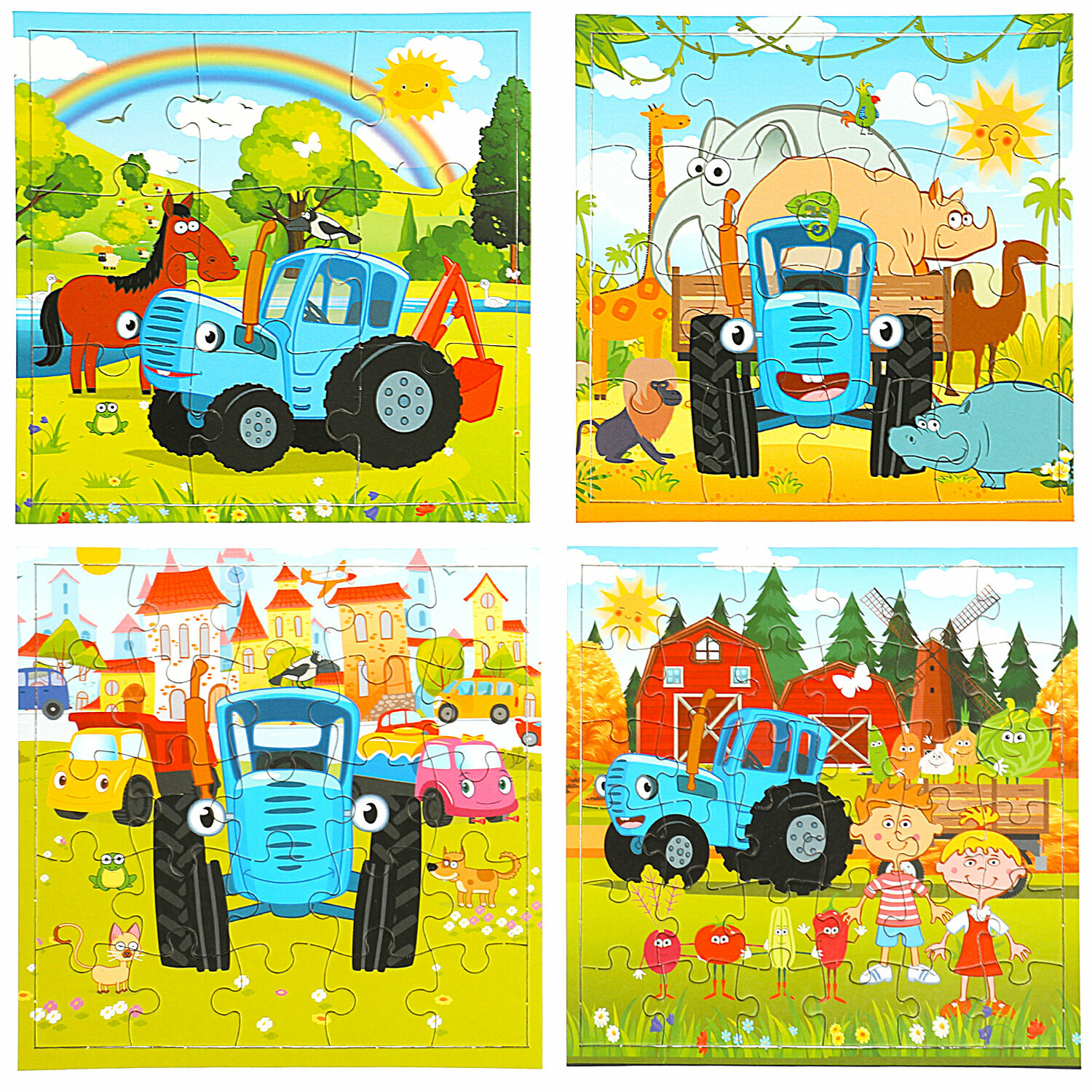 Пазлы 4 в 1 "Синий трактор №9"