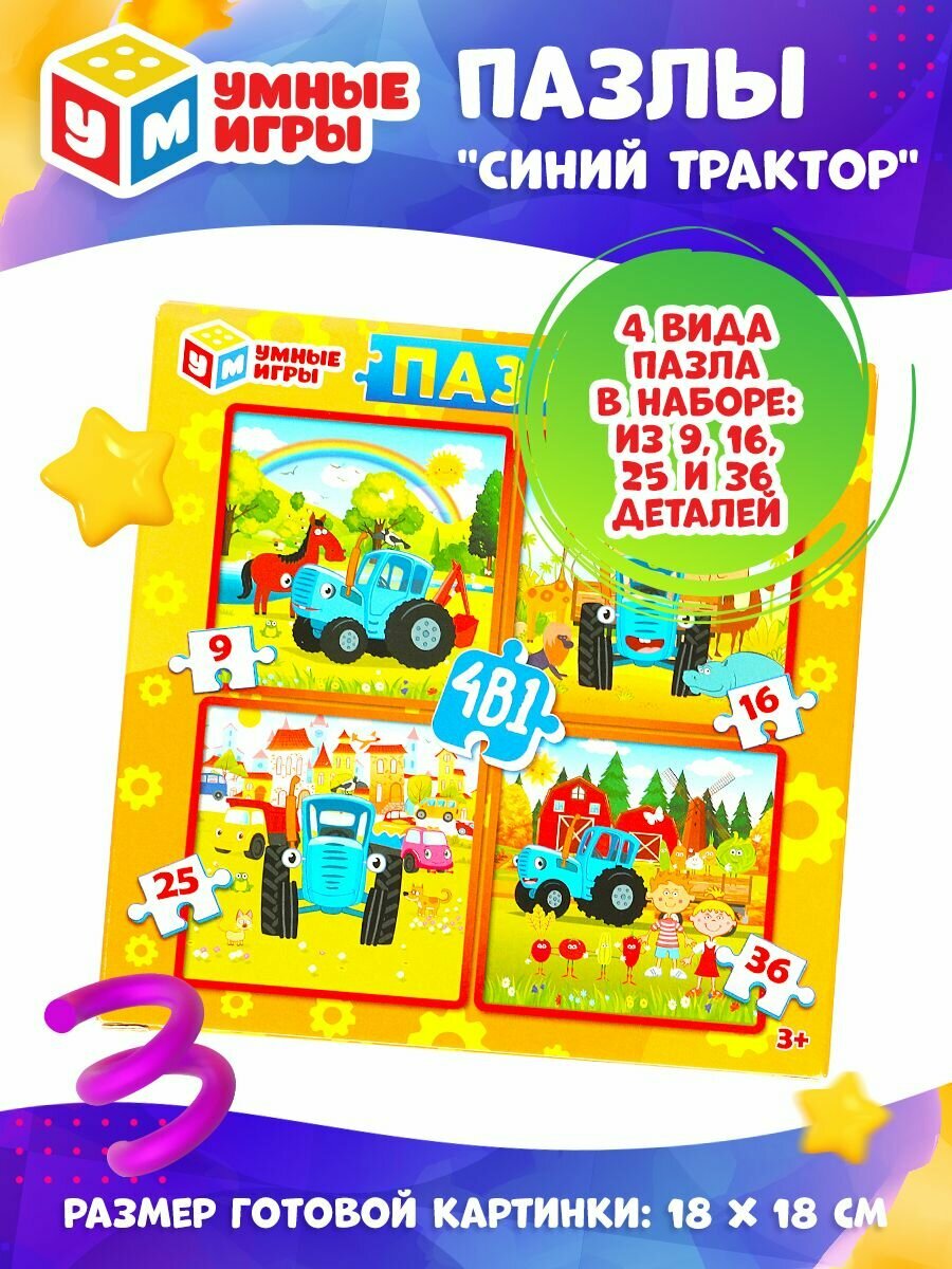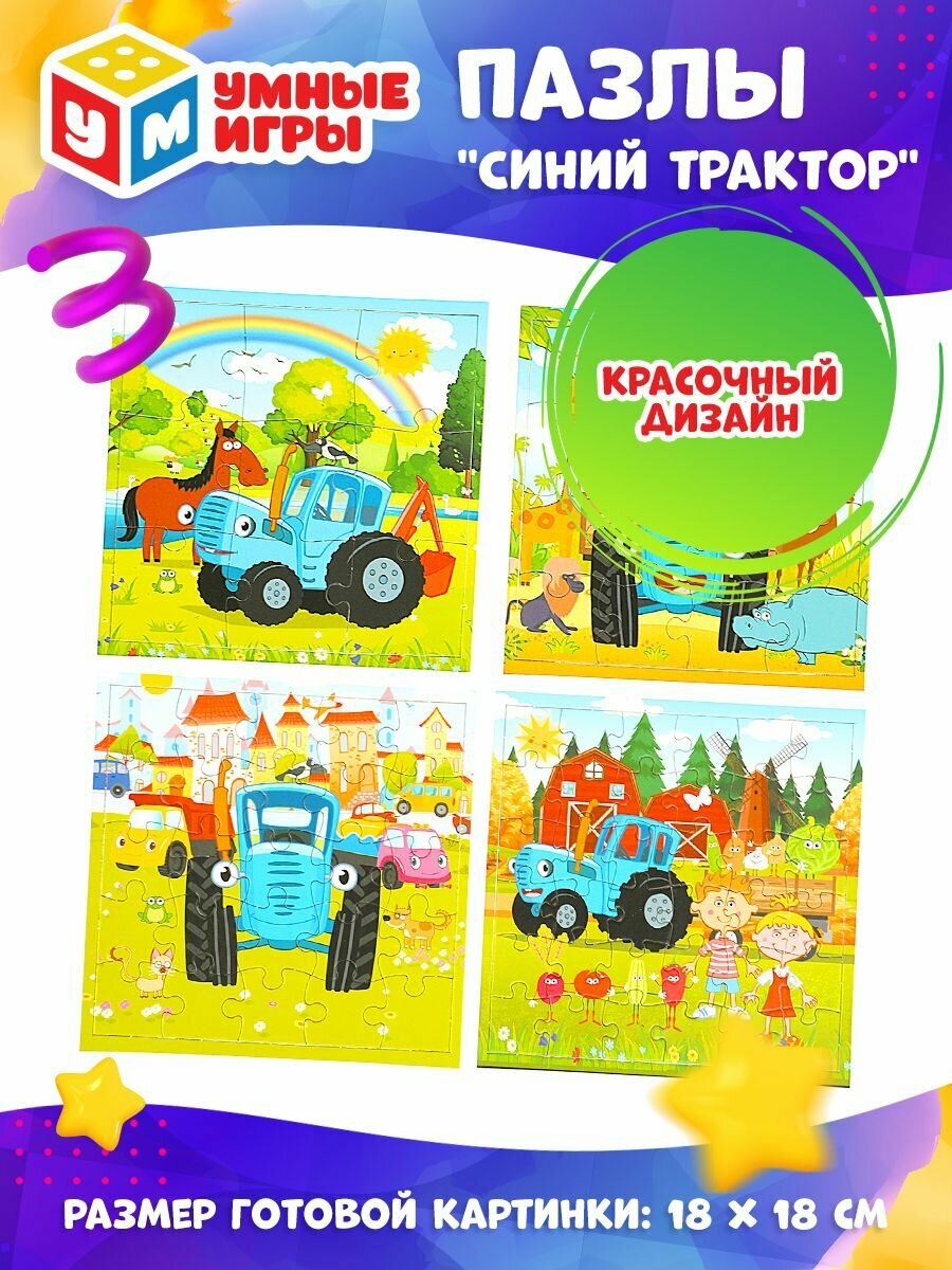 Пазлы для детей набор пазлов Умные игры Синий трактор 4 шт