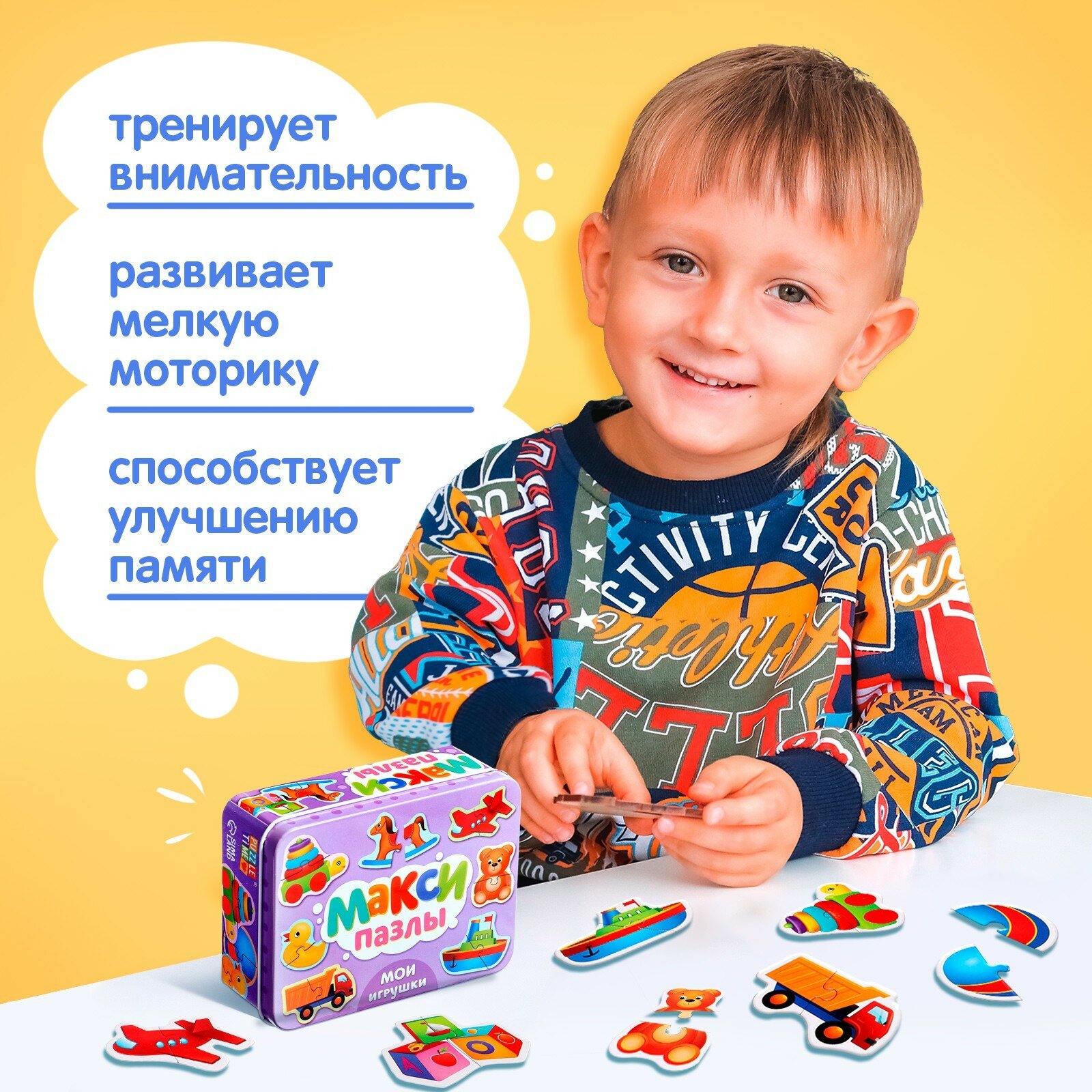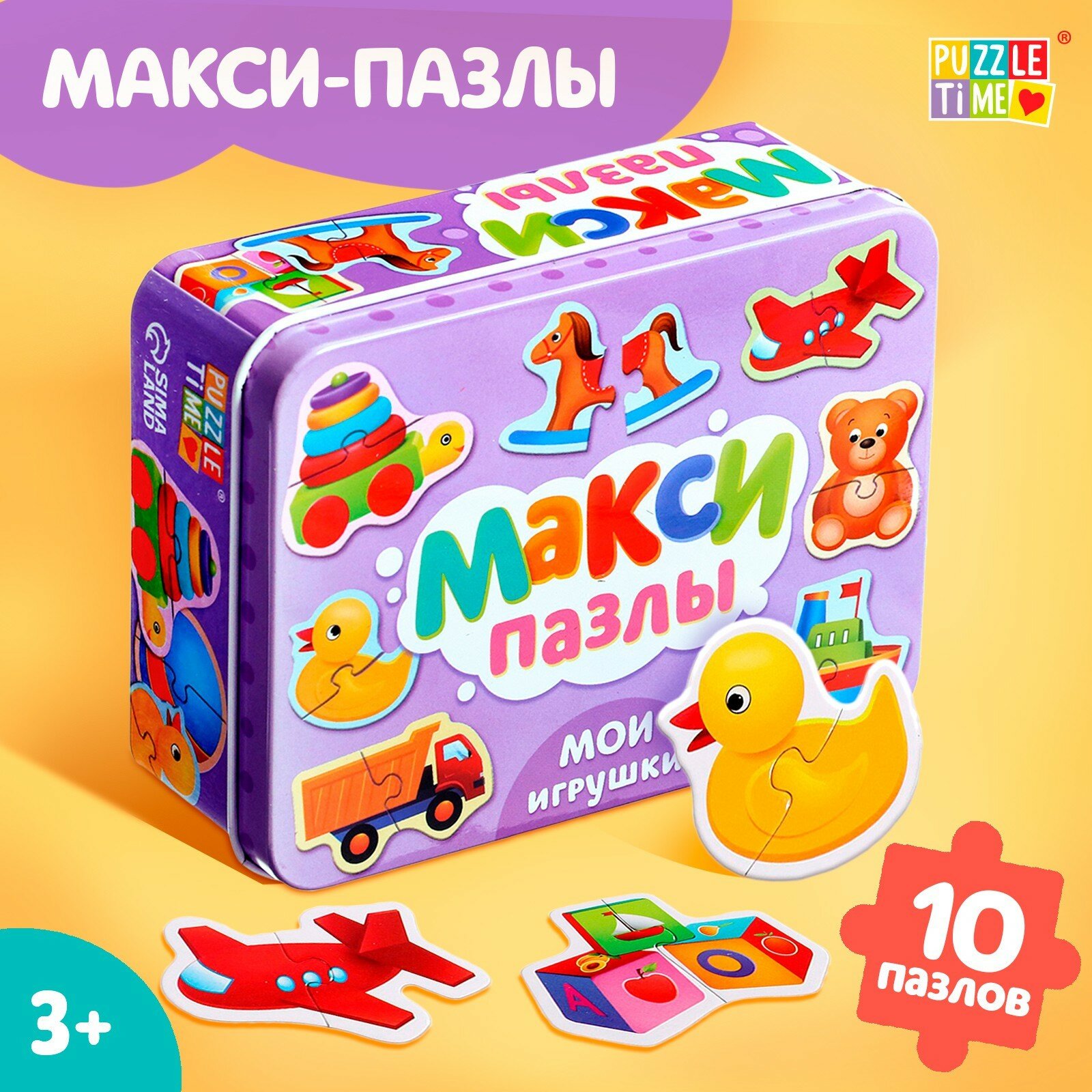 Купить Макси-пазлы в металлической коробке "Мои игрушки", 10 пазлов