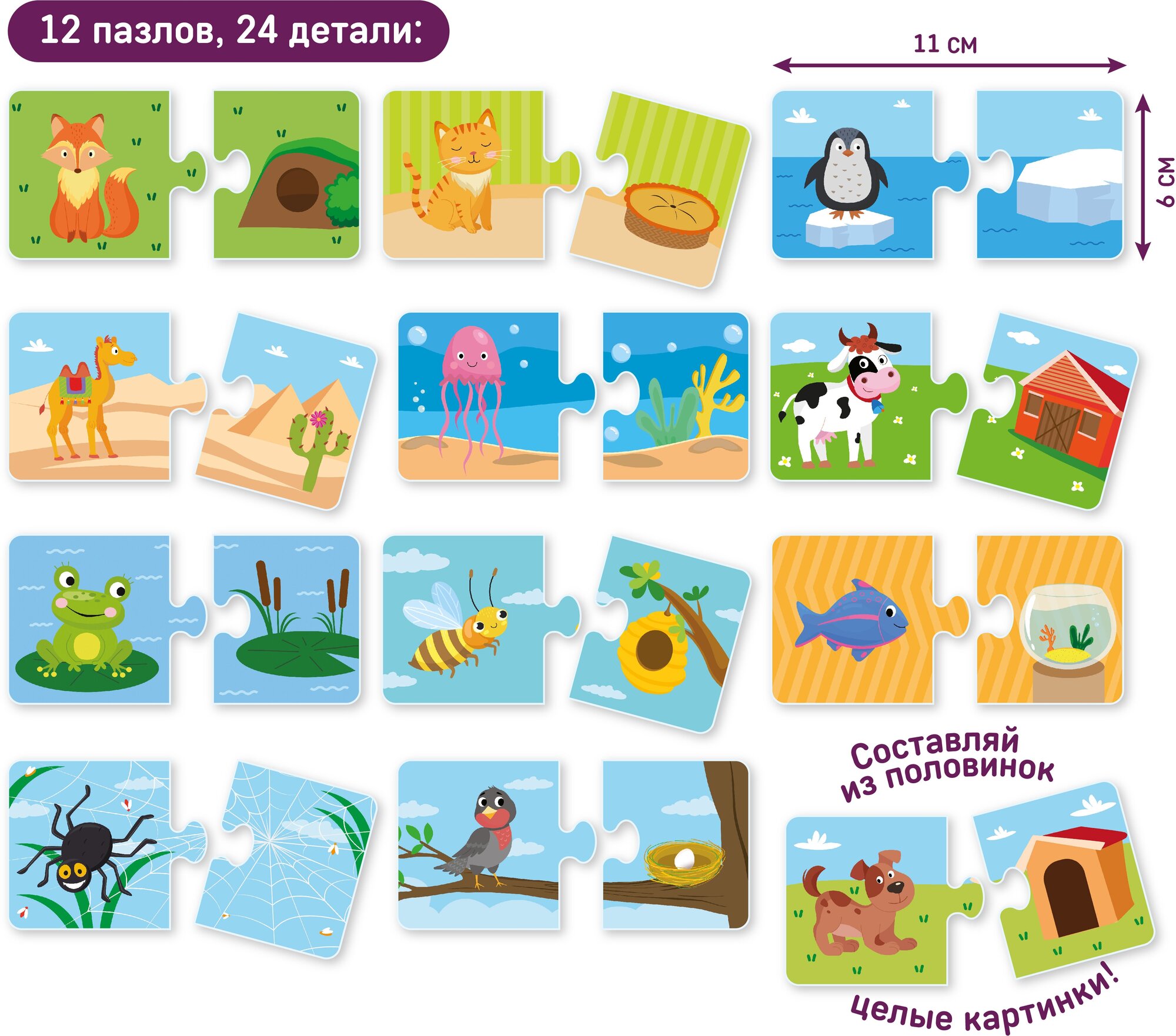 Пазлы парочки набор 2 шт Животные "Кто где живет" и "Кто что ест" , пазлы-половинки El BascoKids