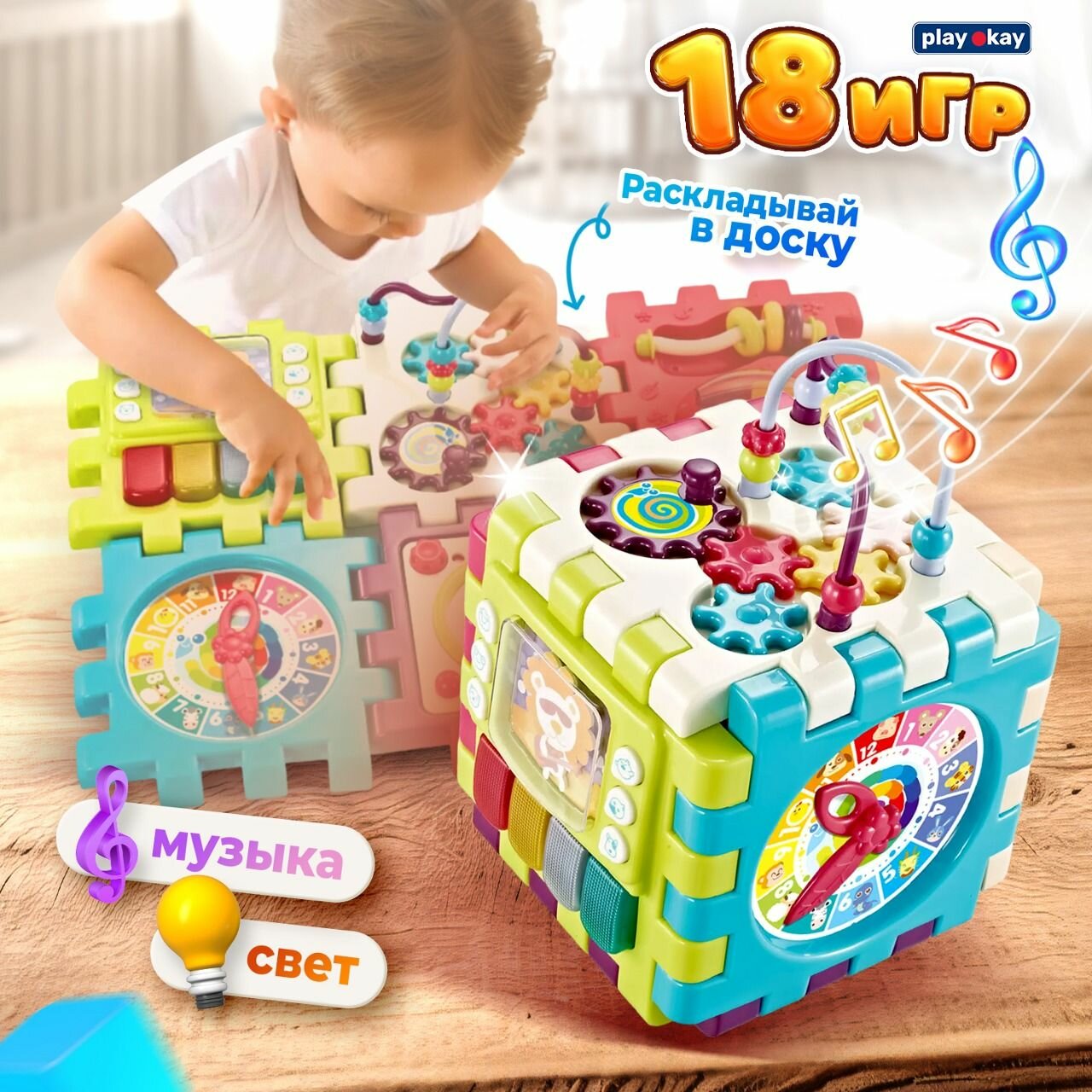 Купить Сортер для малышей Play Okay геометрический куб головоломка, монтессори, раскладывается в доску, интеллектуальное развитие и положительные эмоции