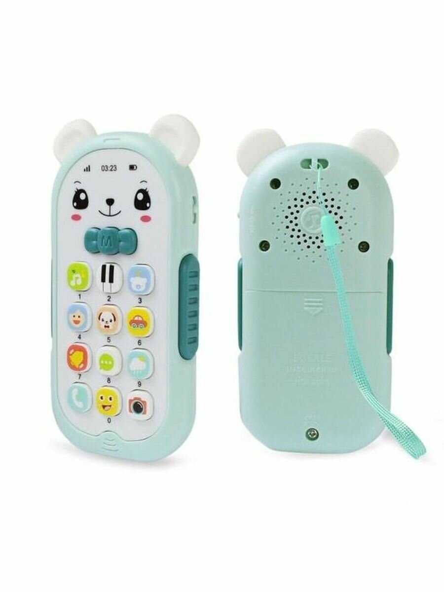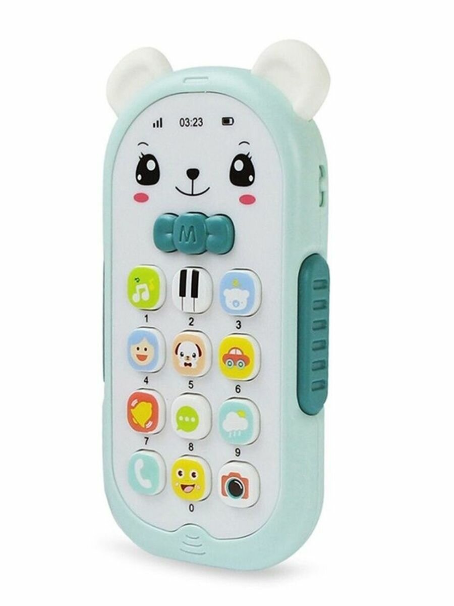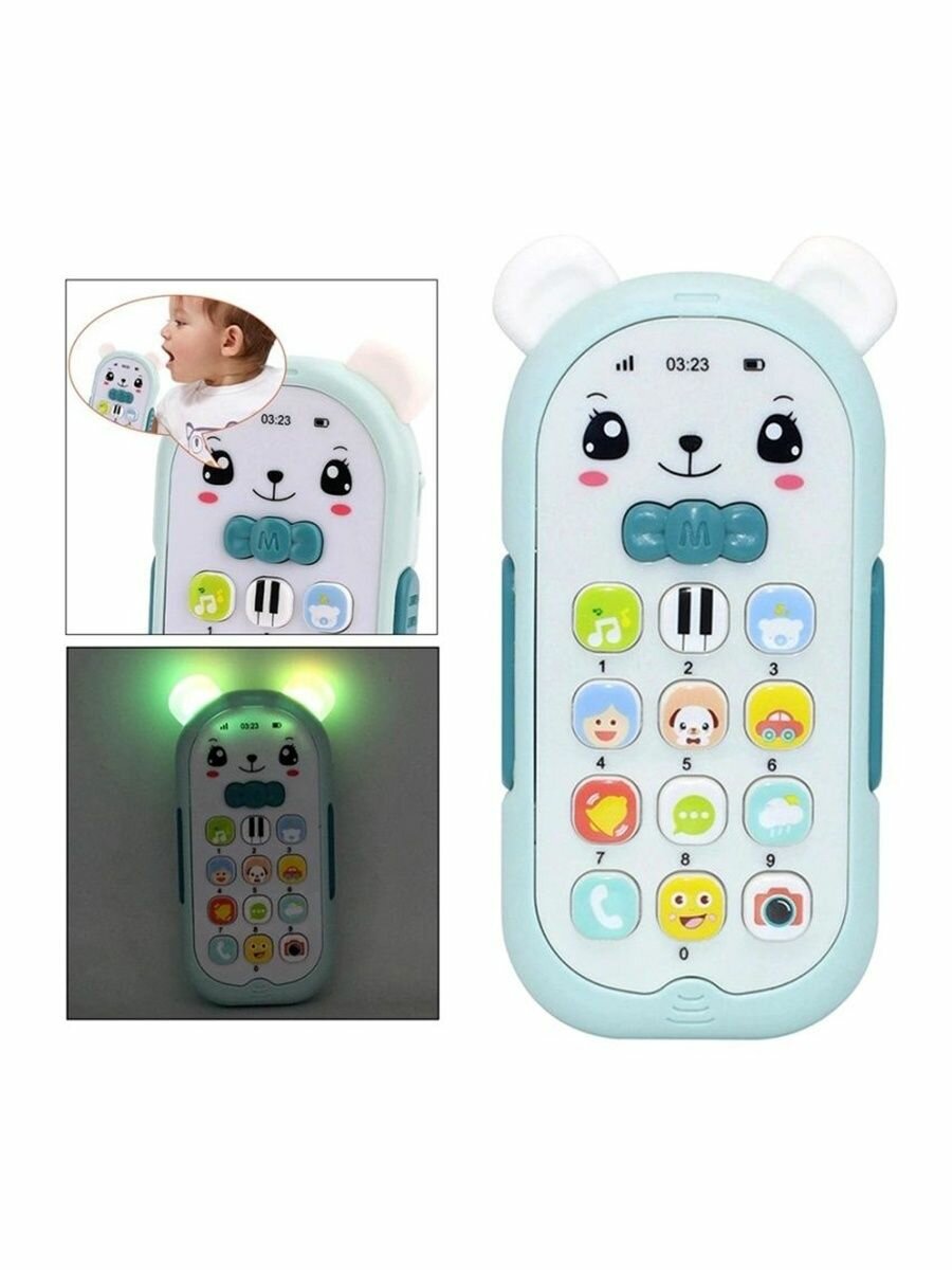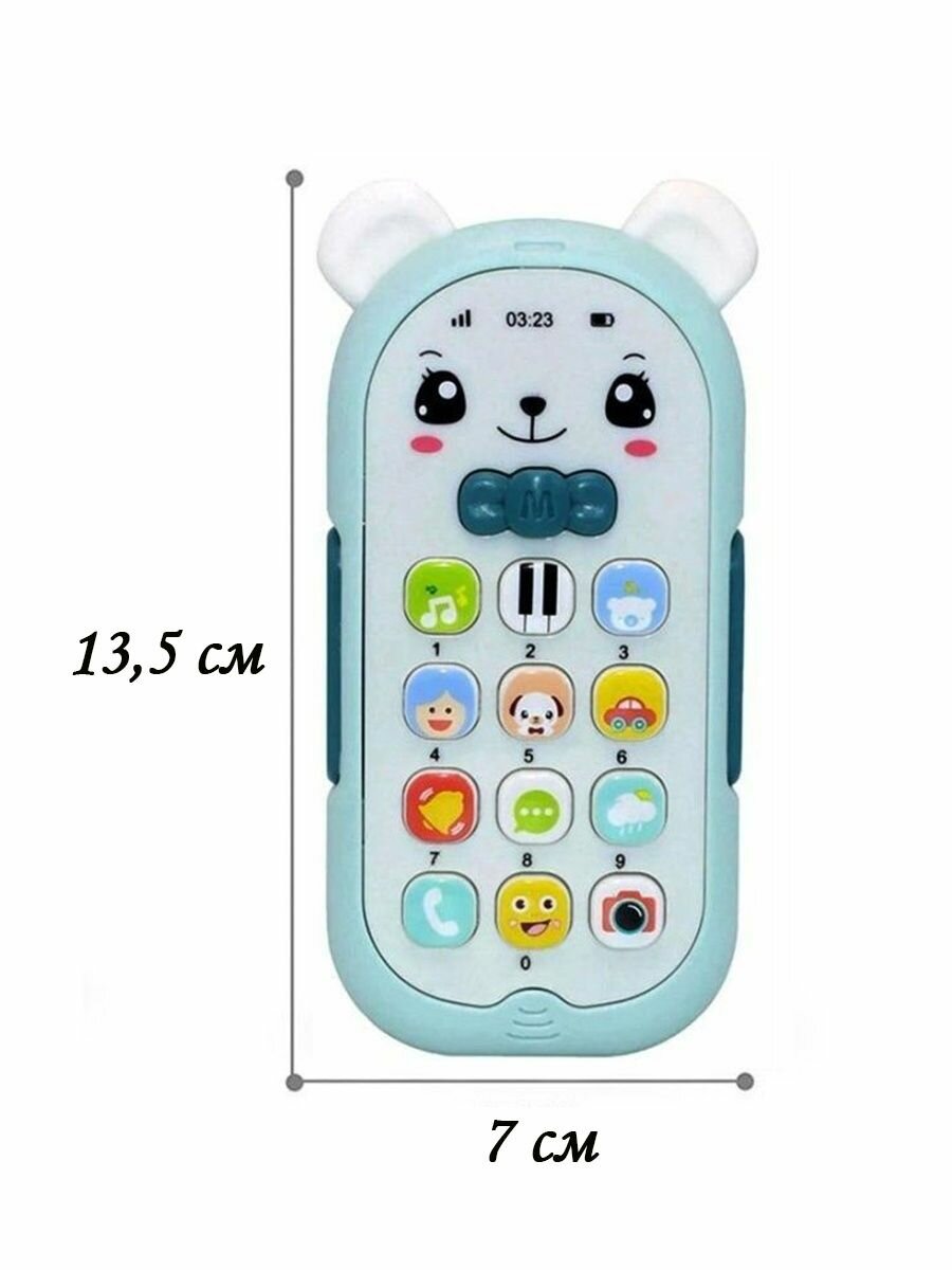 Развивающий детский телефон для малышей, мягкие ушки грызунки для прорезывания зубов. Голубой