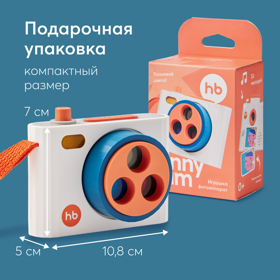 331914, Детский фотоаппарат Happy Baby музыкальный FUNNY CAM, 50 мелодий, цветные линзы, белый интересное: