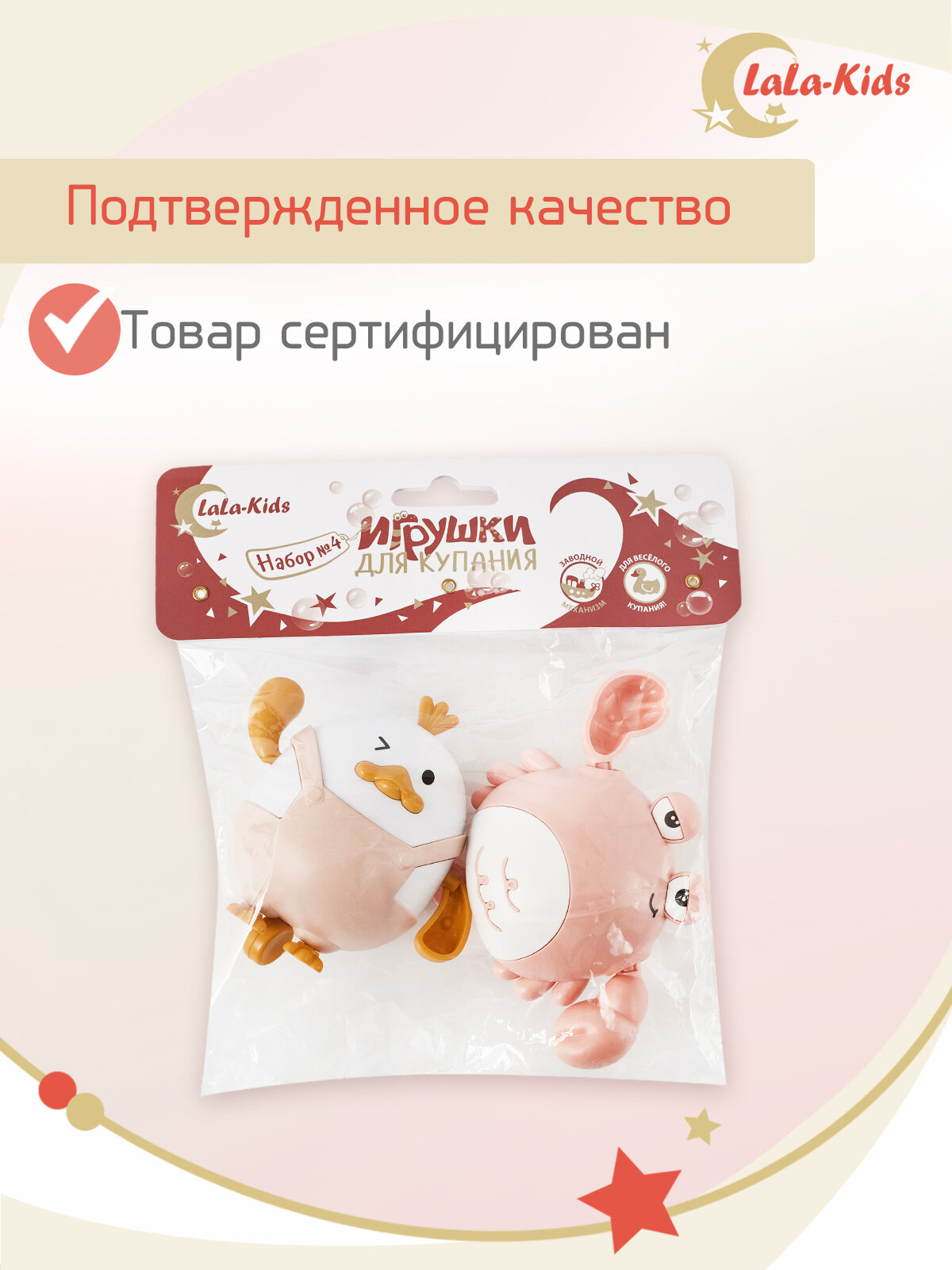 Игрушки заводные детский для купания в ванной LaLa-Kids розовые 2 шт интересное: