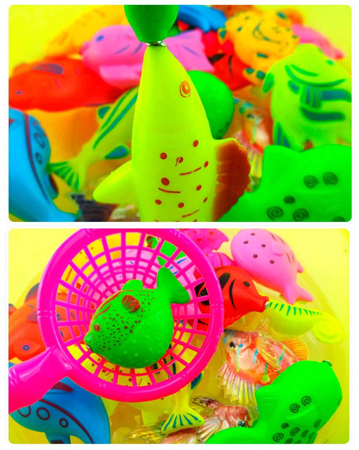 | Комплектация | 22 игрушки: 20 морских животных 1 раздвижная удочка с катушкой 1 сачок, для вытаскивания улова |