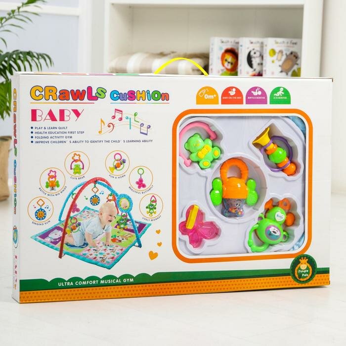 Купить Развивающий коврик с дугами «Ежик и друзья», 5 игрушек, зеркало, размер 85x85 см