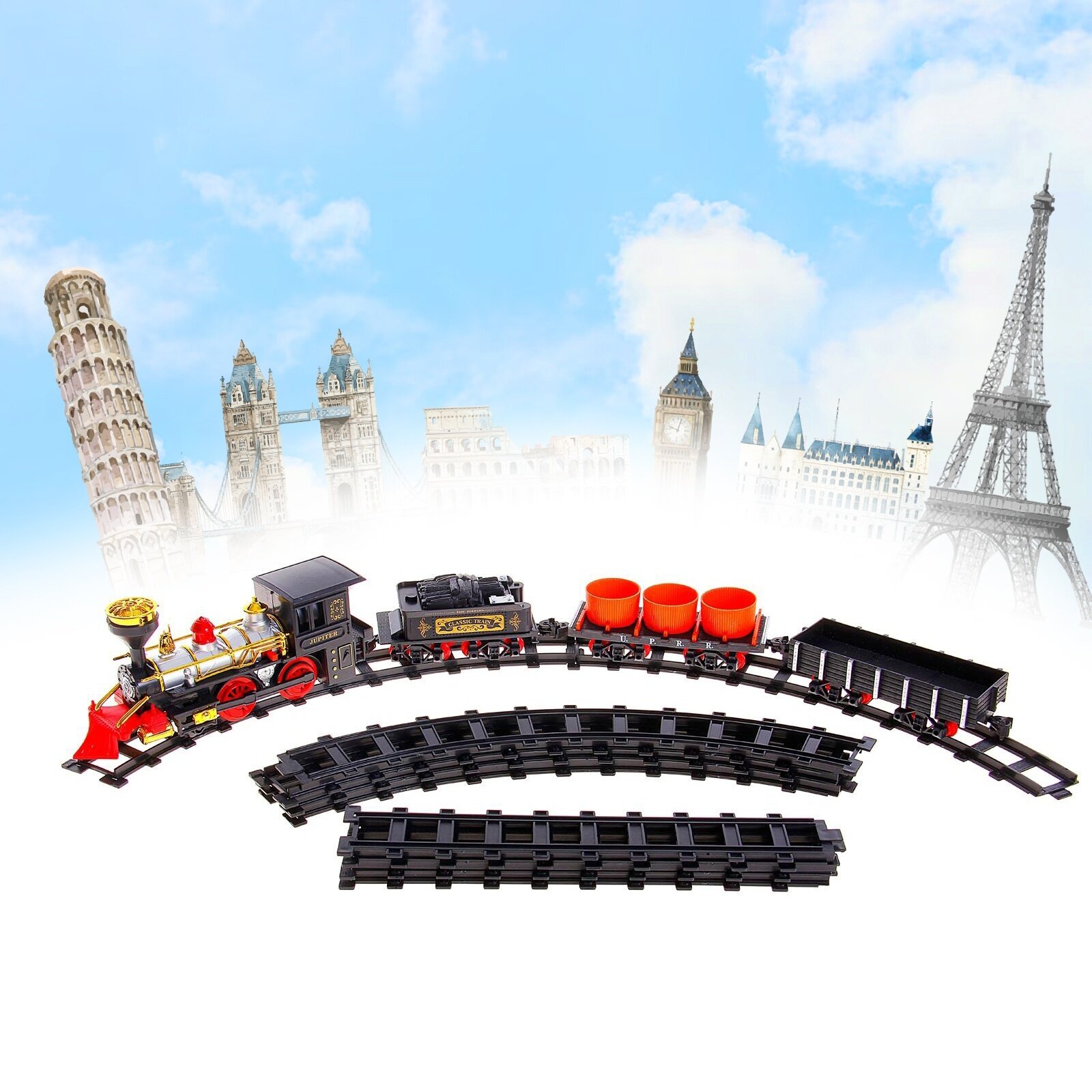 Железная дорога "Классический грузовой поезд", с 3 прицепными вагонами, эффект дыма интересное: