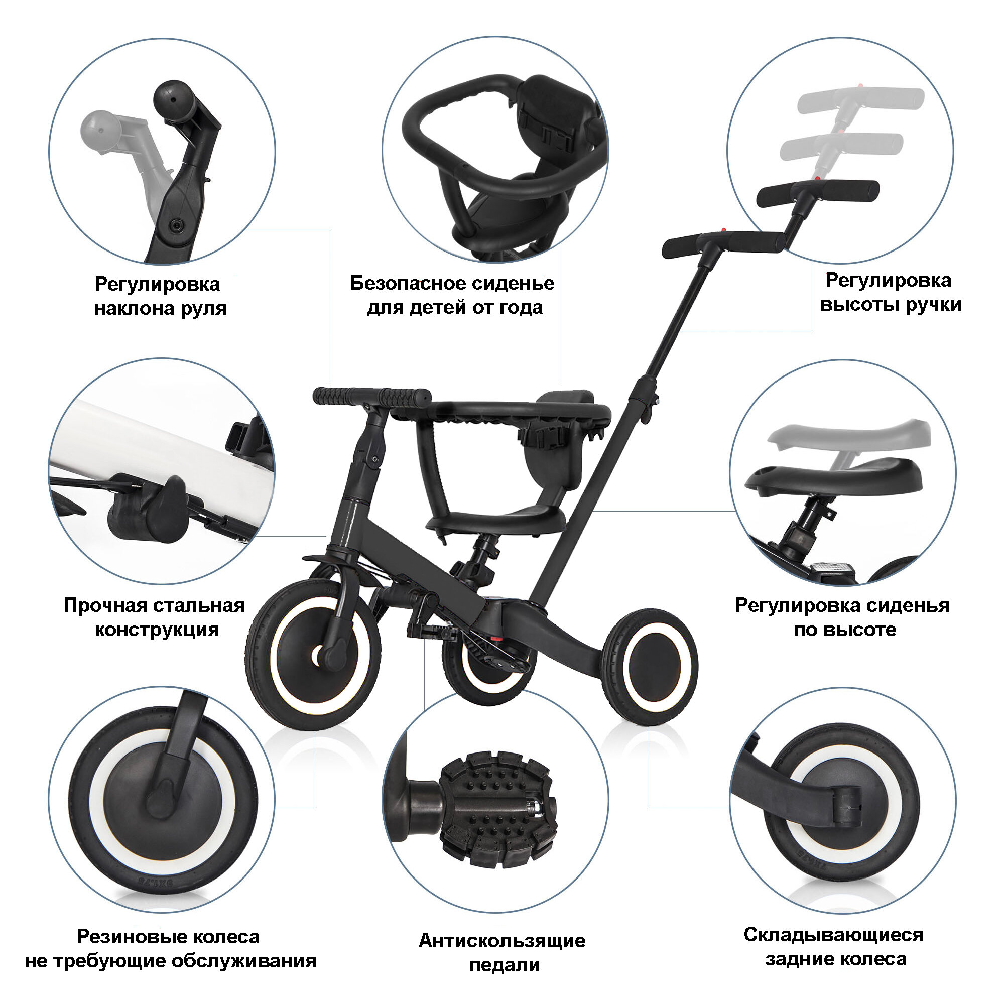 Детский беговел-велосипед 6в1 с родительской ручкой, черный - TR008-BLACK интересное: