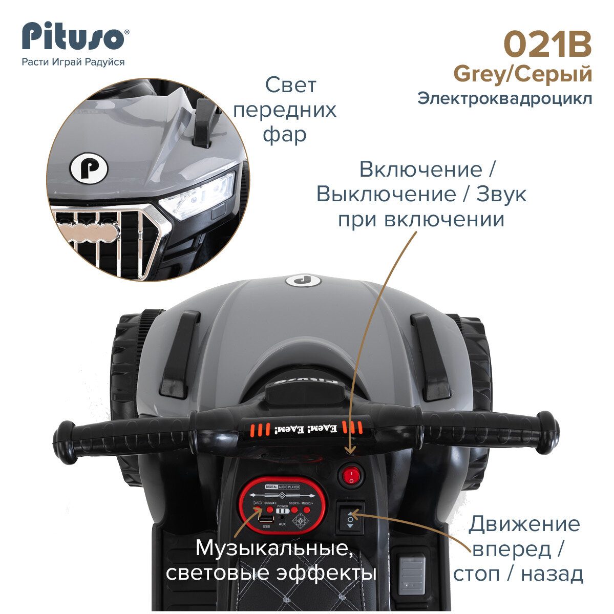 Купить Детский электромобиль Pituso Квадроцикл 021B со светом и звуком, 6V/4,5Ah,20W, серый