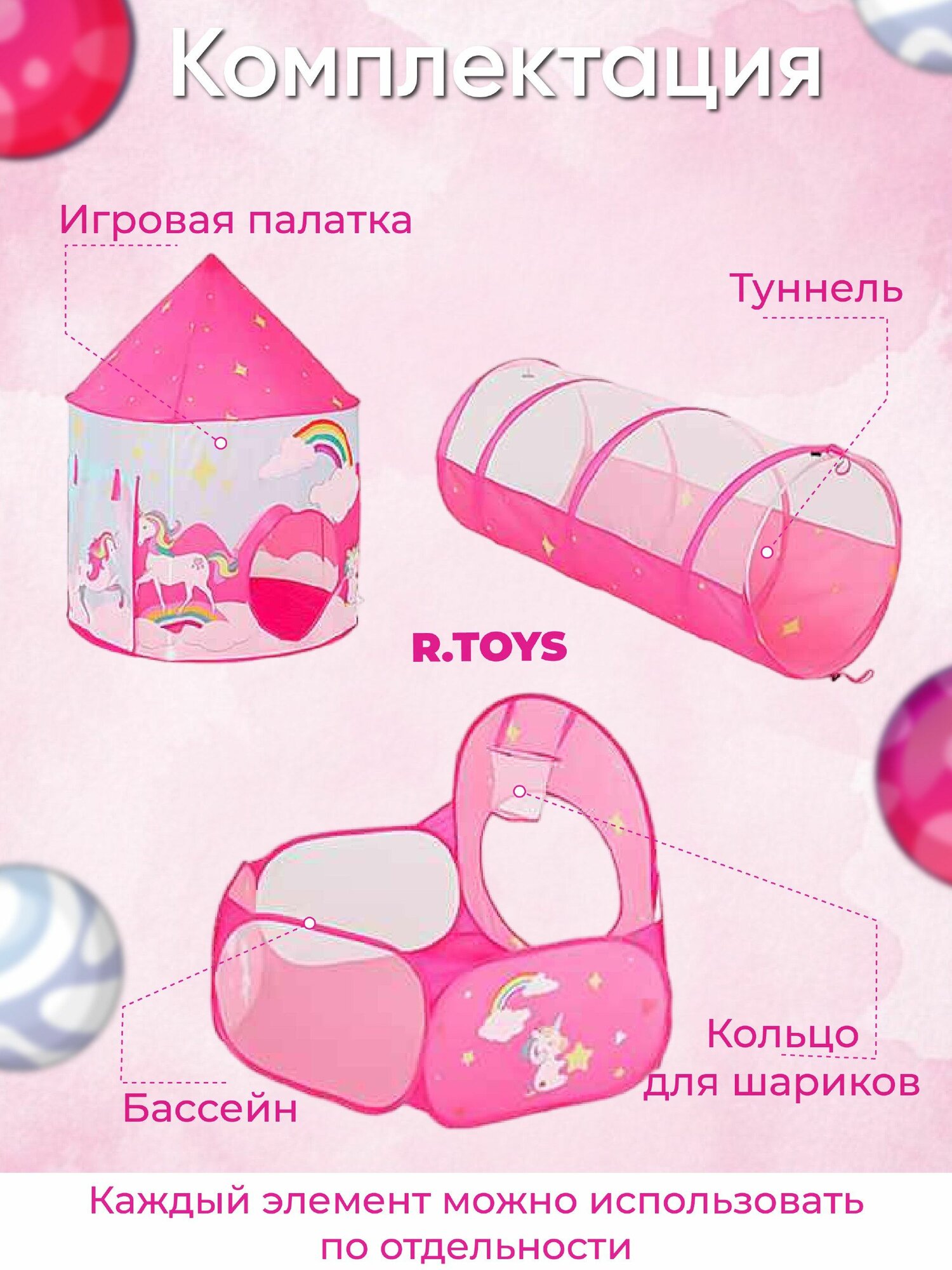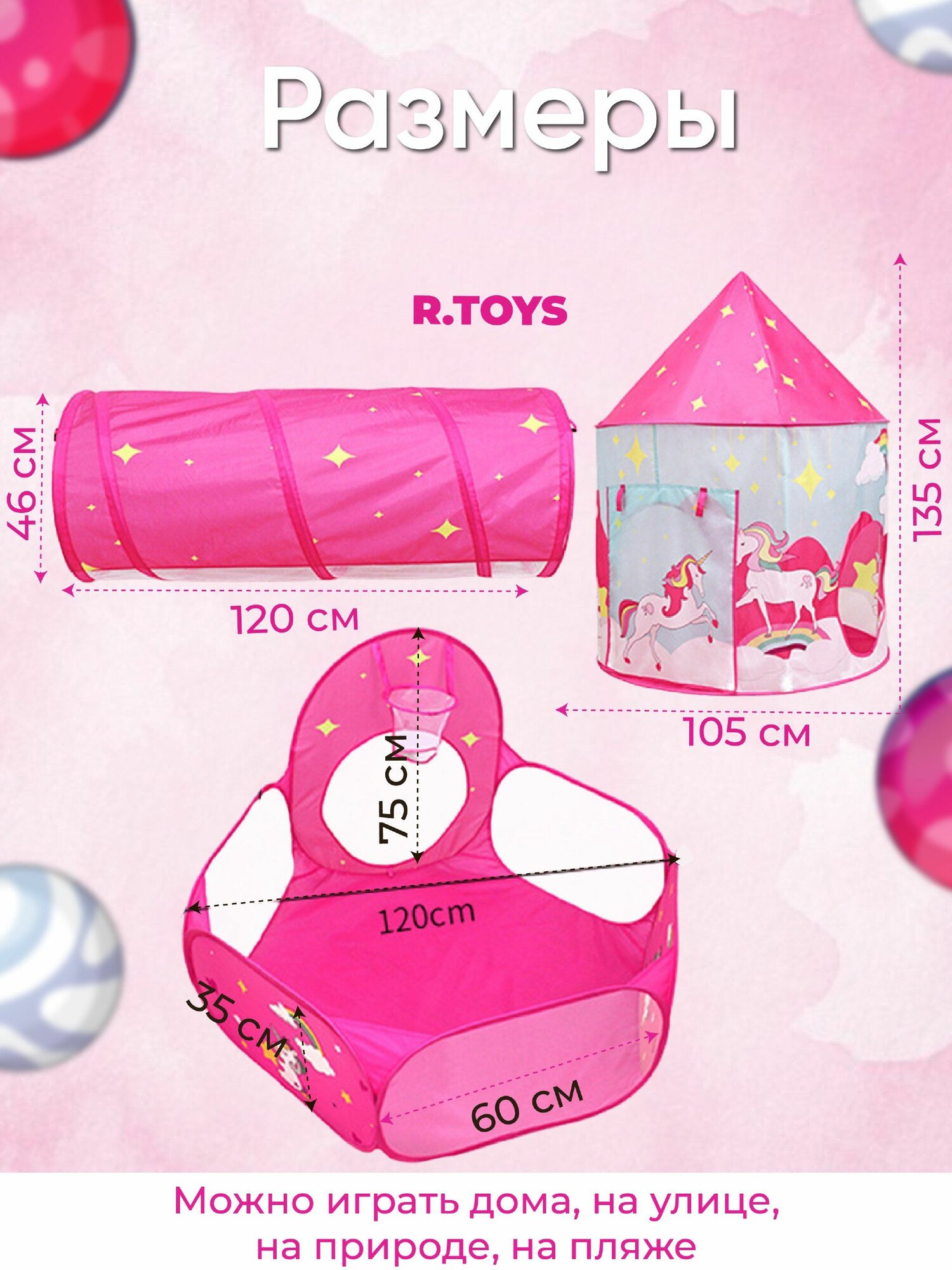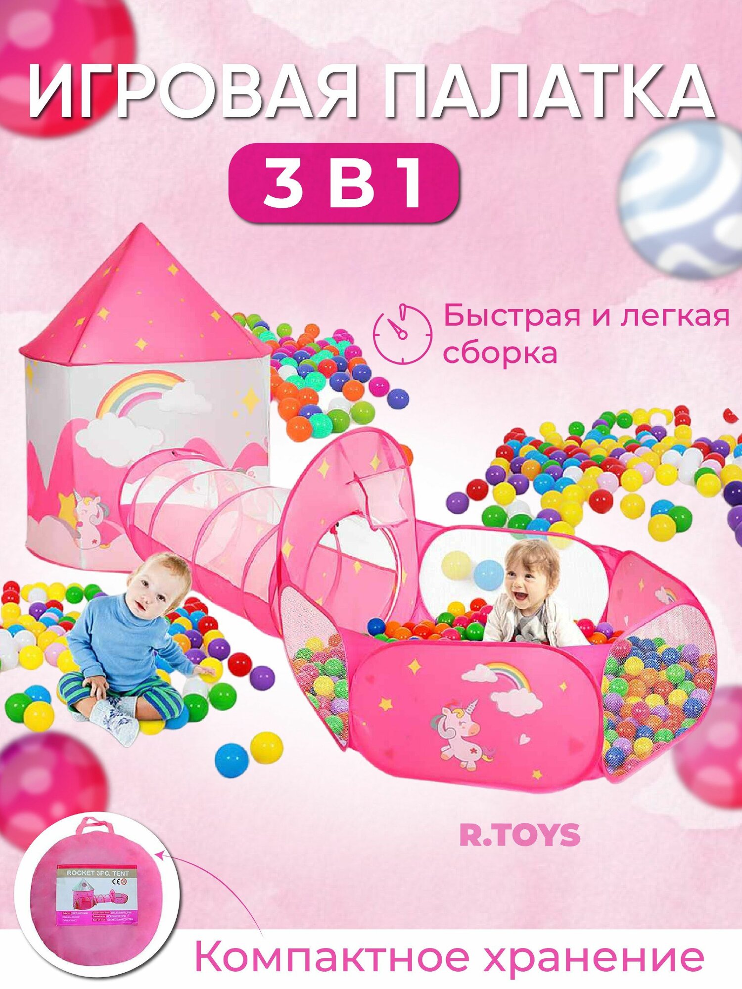 Палатка игровая с тоннелем и бассейном 3 в 1 Ракета красный интересное: