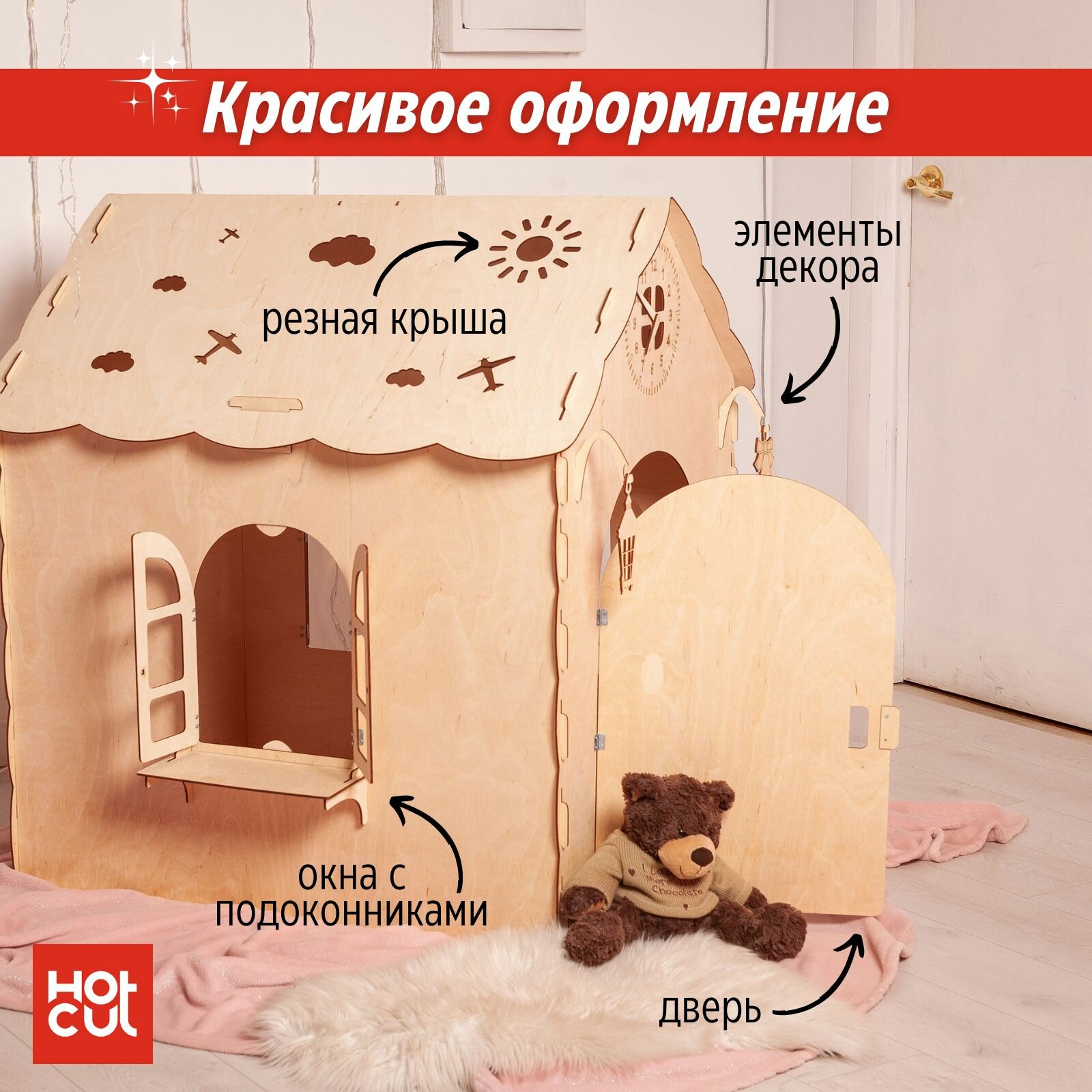Домик для детей игровой развивающий деревянный из фанеры 4 мм интересное: