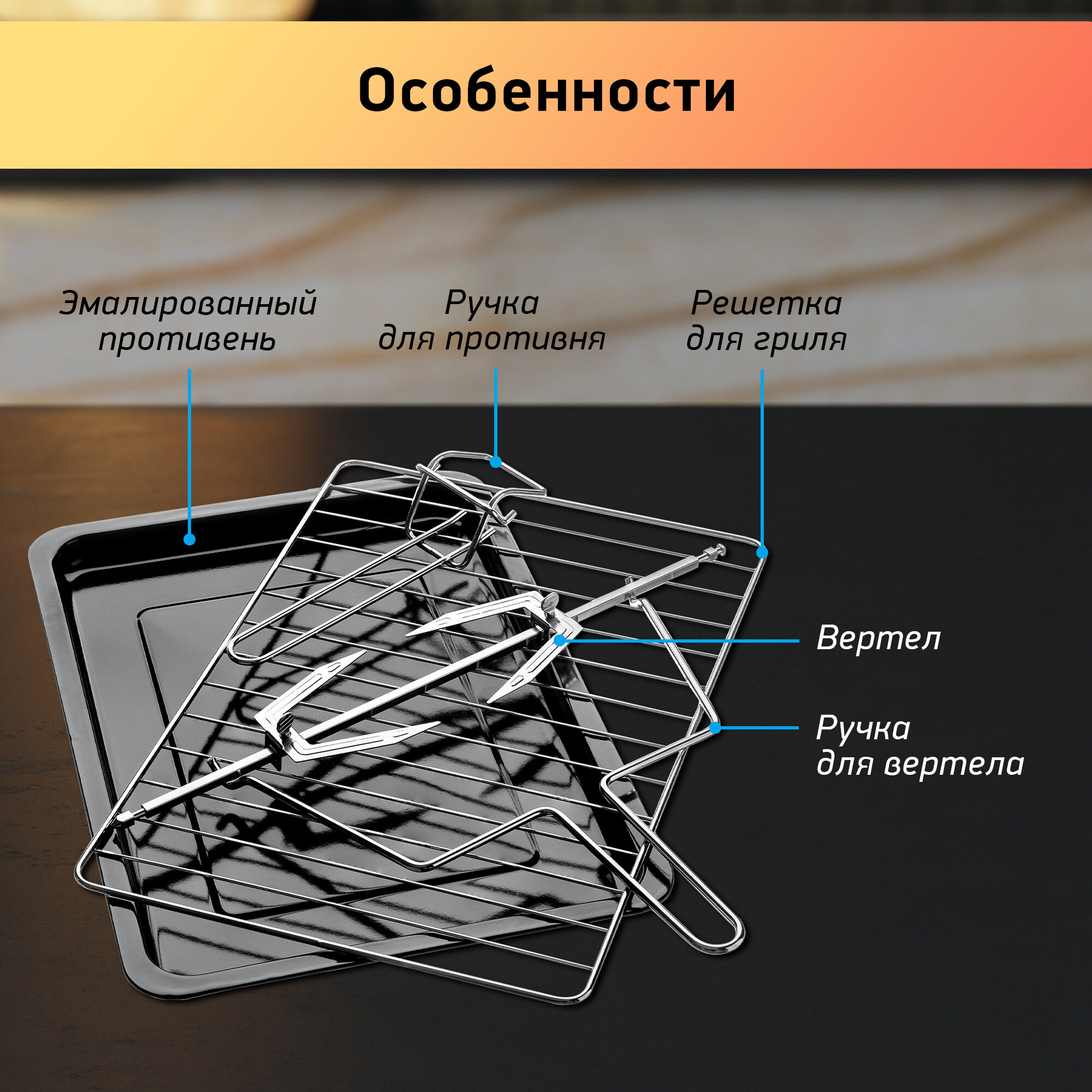 И в комплекте есть гриль противень и всё такое. Точка. На этом всё. |