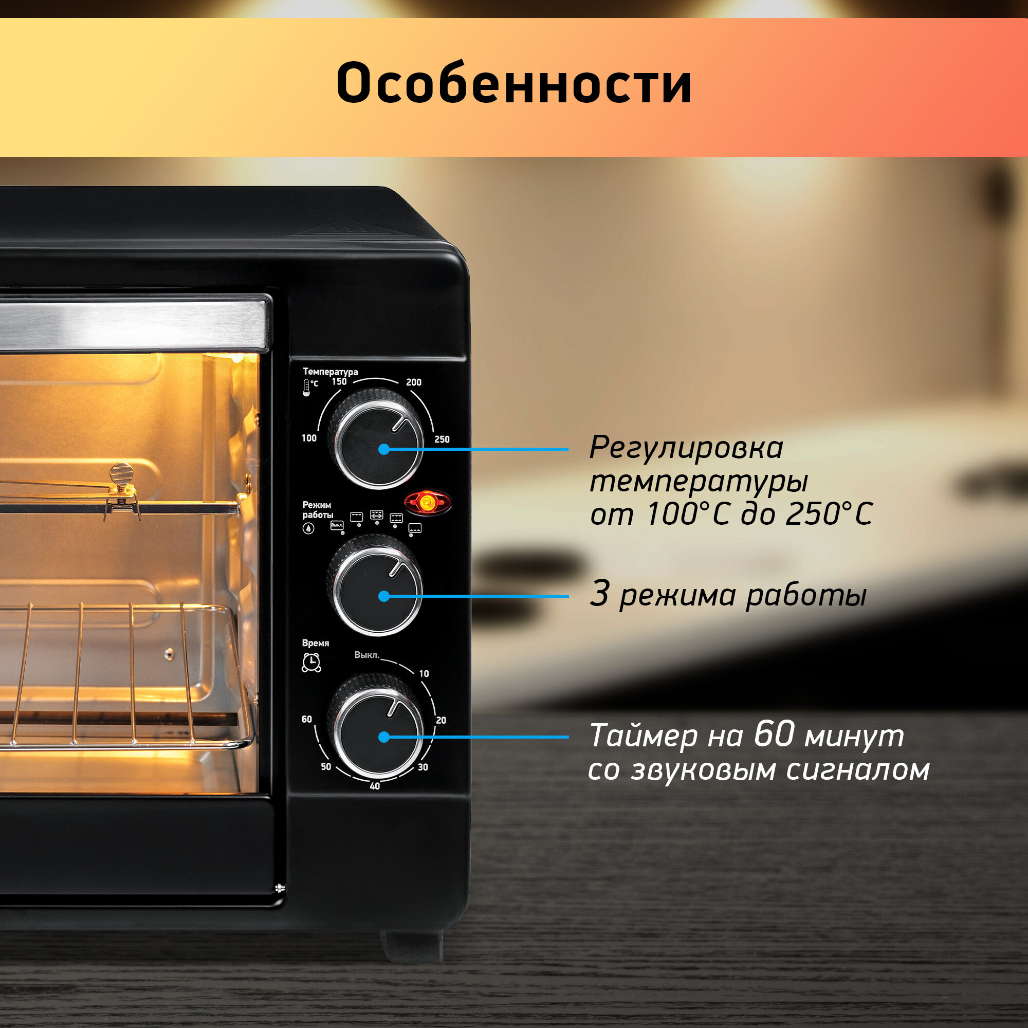 Мини-печь GURMAN GR-HL630, 63л, 2200Вт.