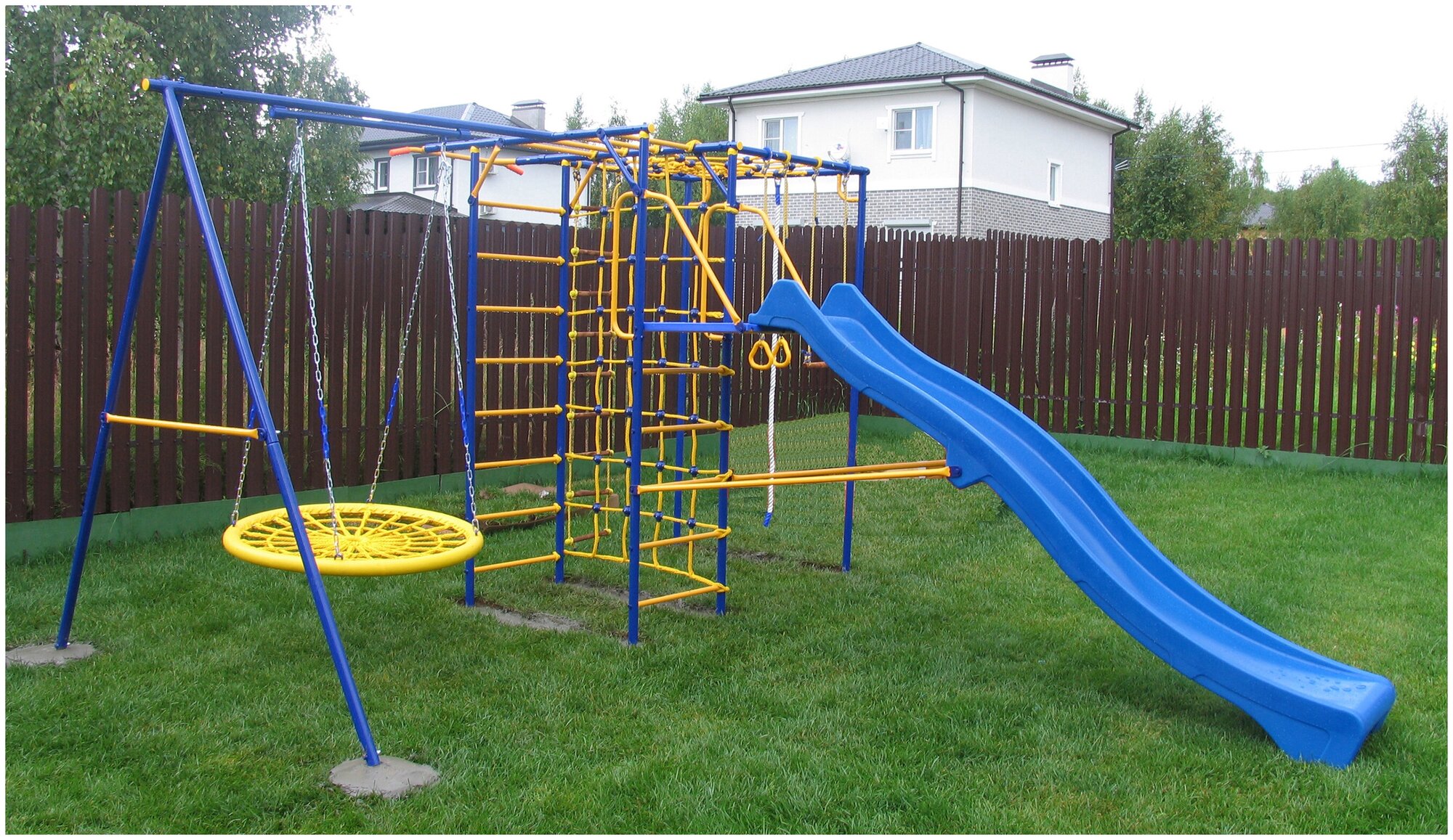 | В комплекте | гимнастические кольца, горка, канат, качели, лестница, рукоход, сетка для лазания, турник |