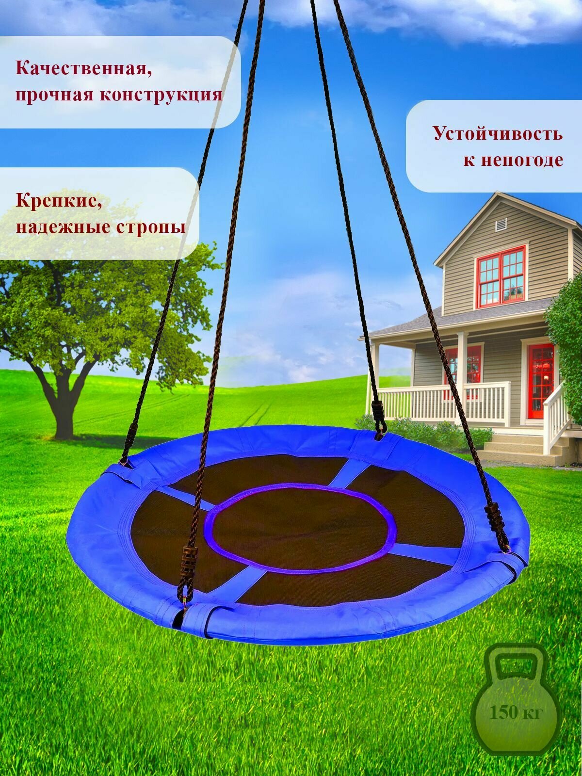 Качели-гнездо круглые 100см синие интересное: