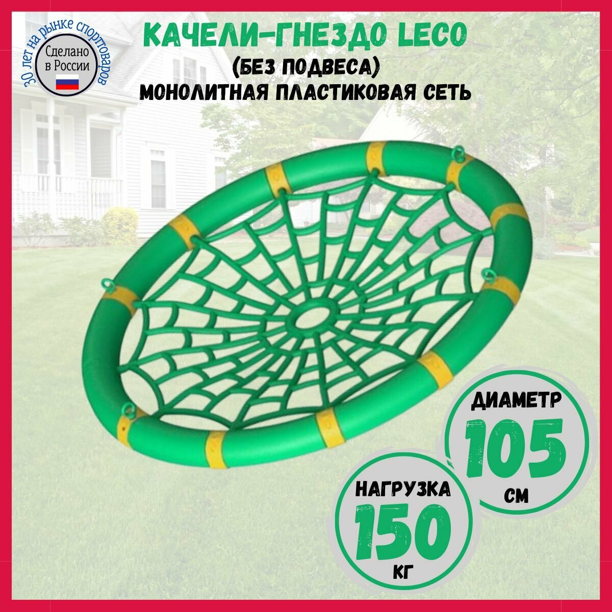 Качели-гнездо LECO 105 см с пластиковой сеткой, зеленое интересное: