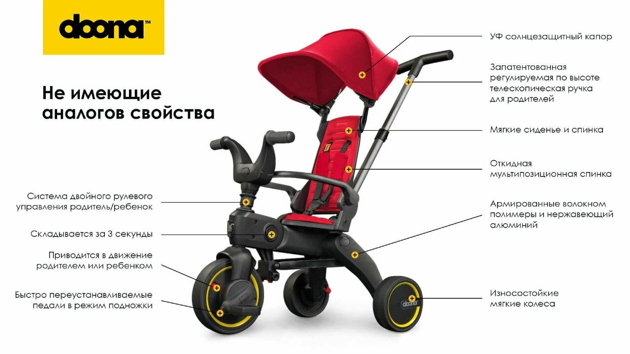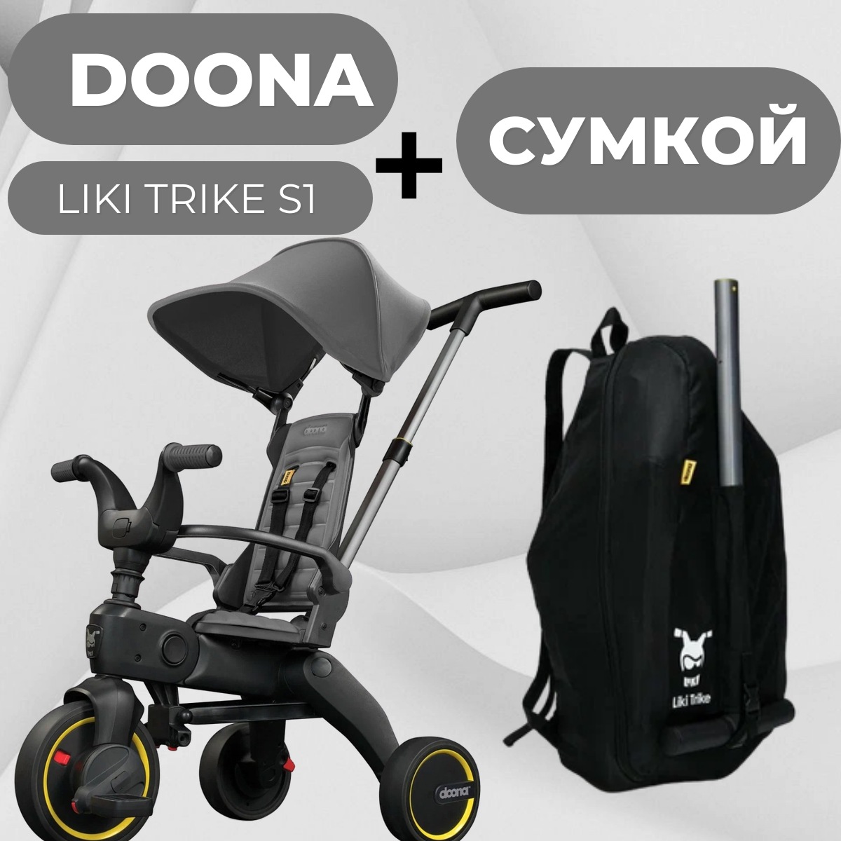 Трехколесный детский складной велосипед Doona Liki Trike S1, grey hound с сумкой Liki Trike Travel Doona интересное: