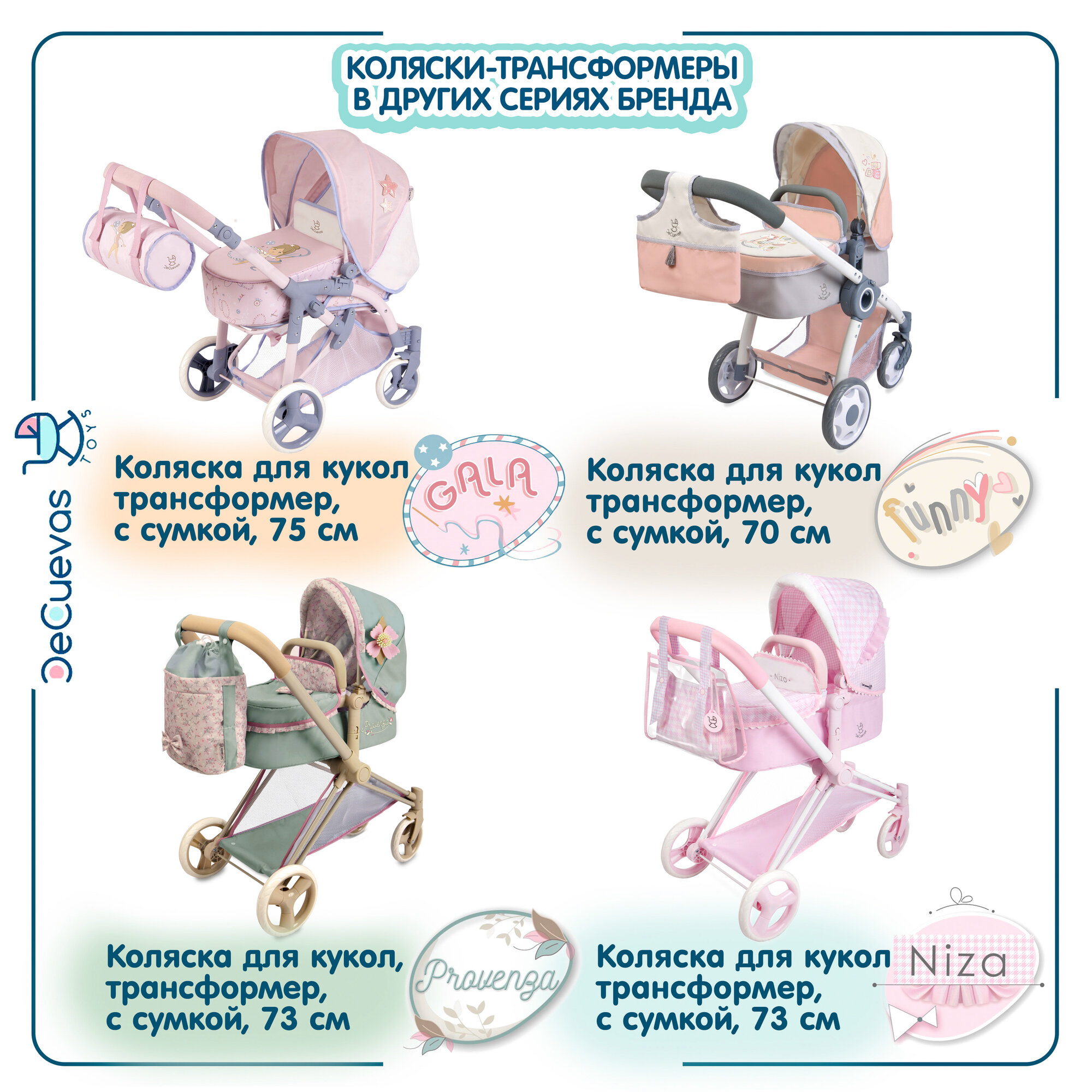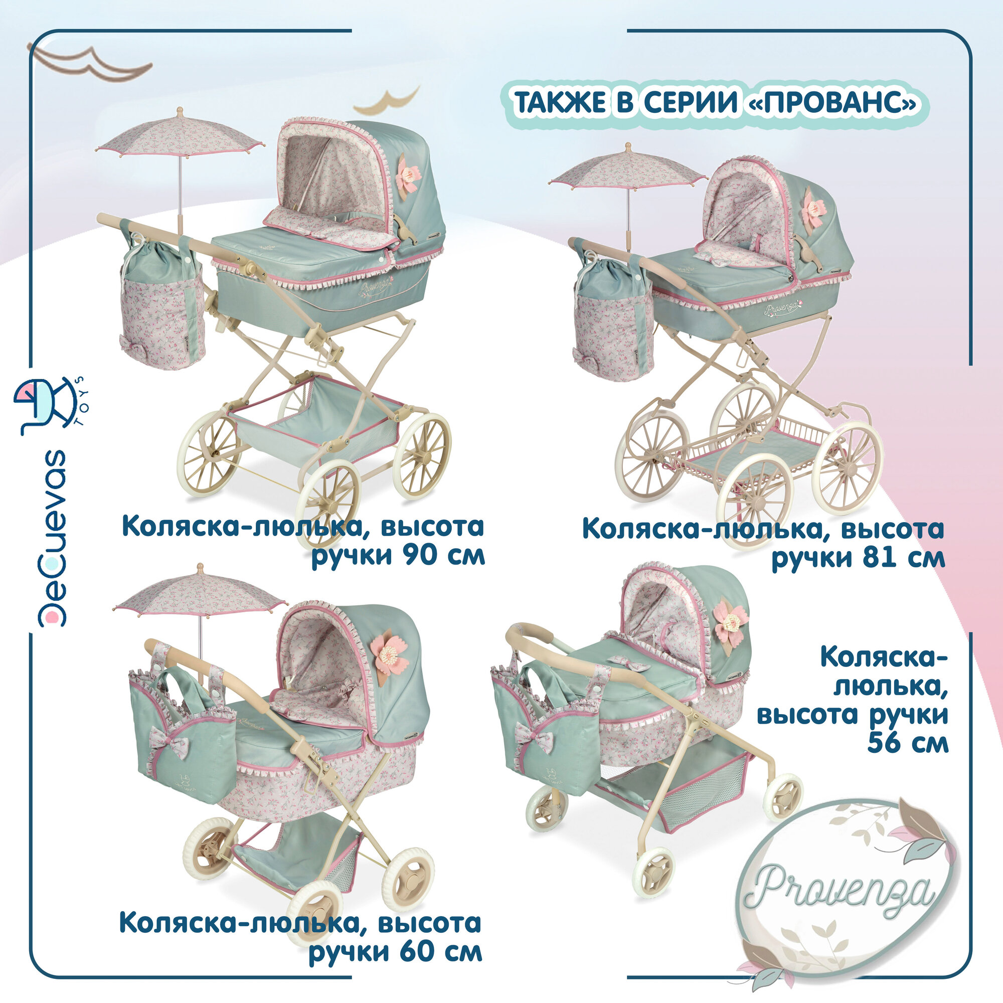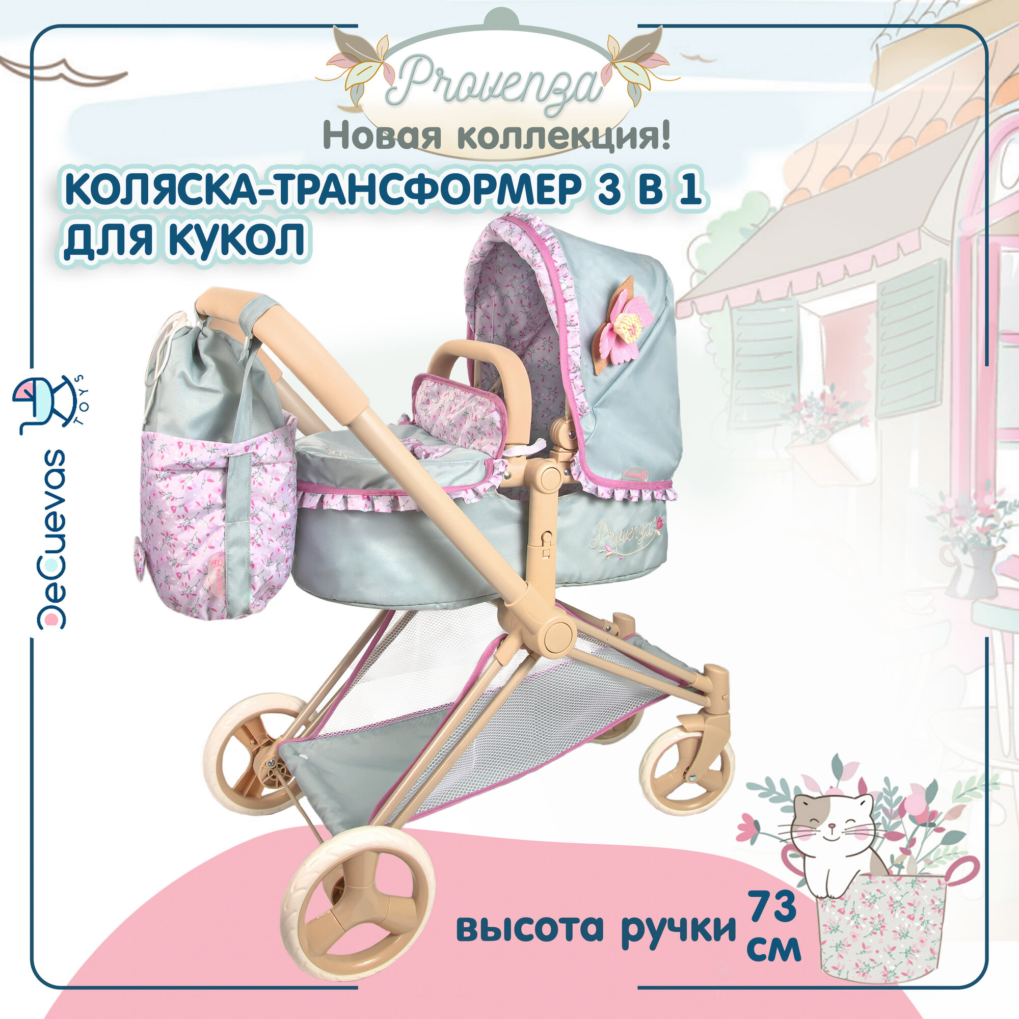 Коляска для кукол DeCuevas Toys трансформер 3 в 1 с сумкой, высота ручки 73 см, серия Прованс интересное: