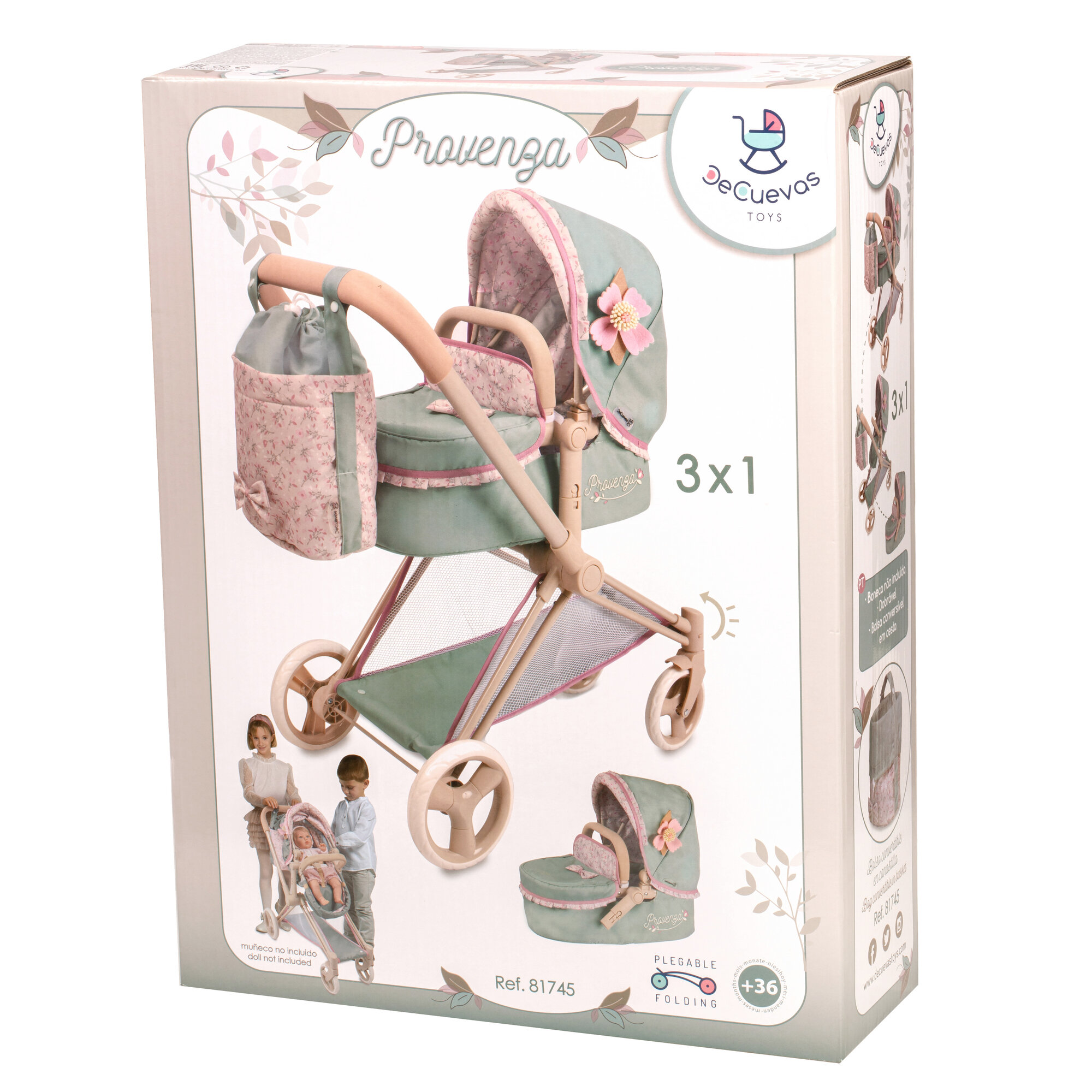 Купить Коляска для кукол DeCuevas Toys трансформер 3 в 1 с сумкой, высота ручки 73 см, серия Прованс