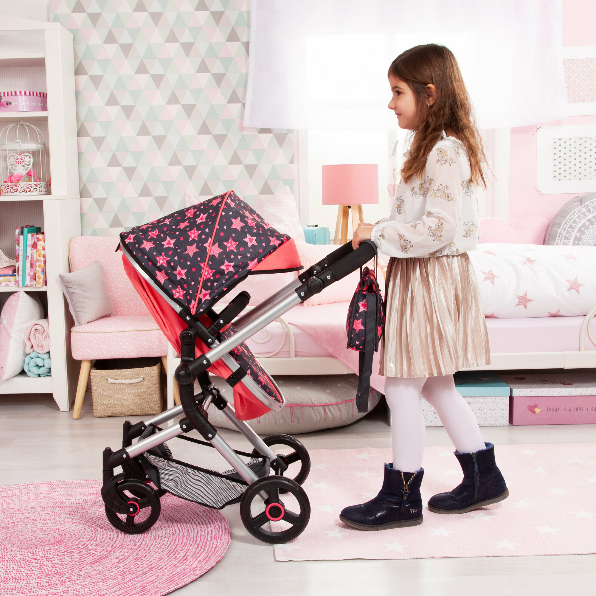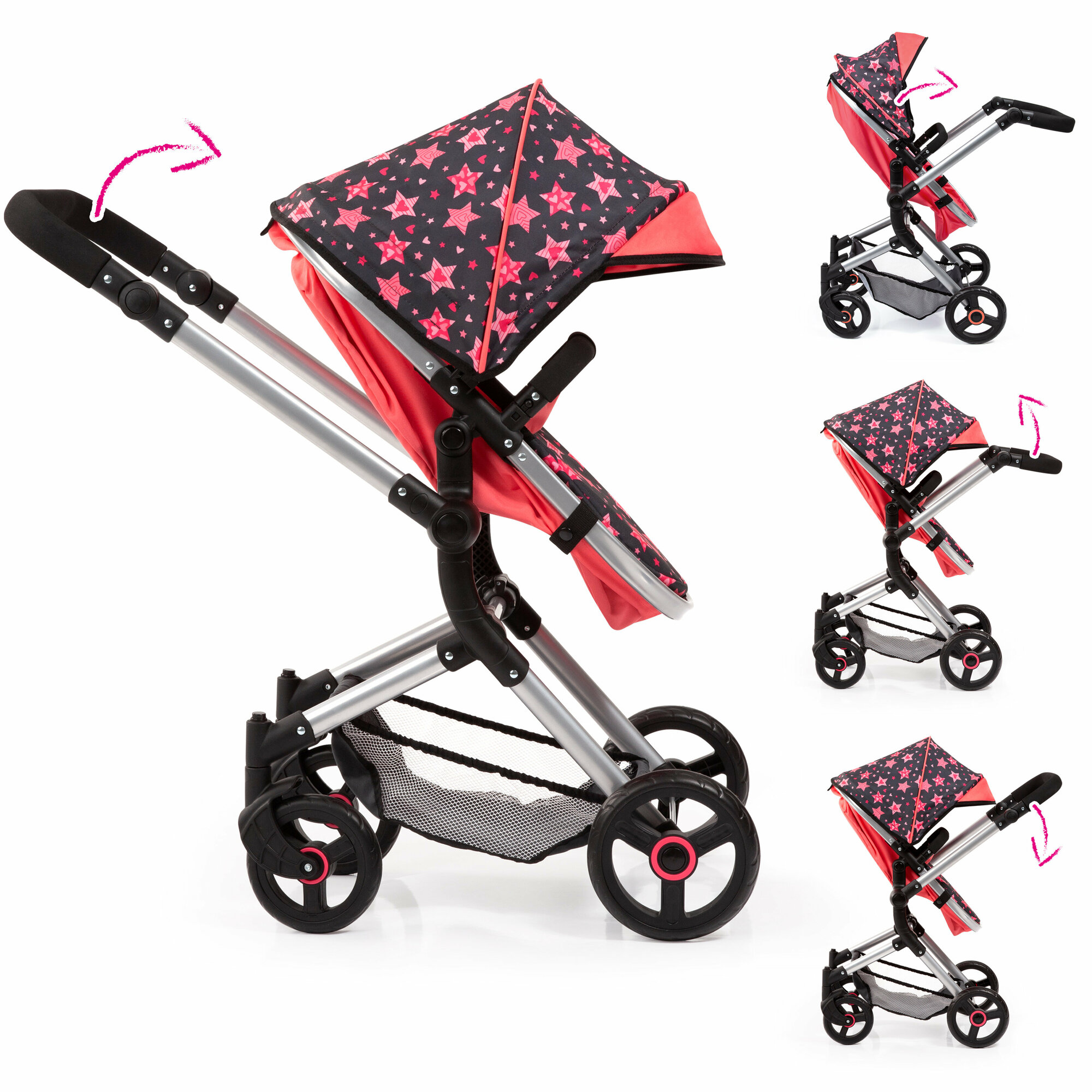 Детская коляска для кукол Combi Dolls Pram Neo Vario коралловая со звездочками интересное: