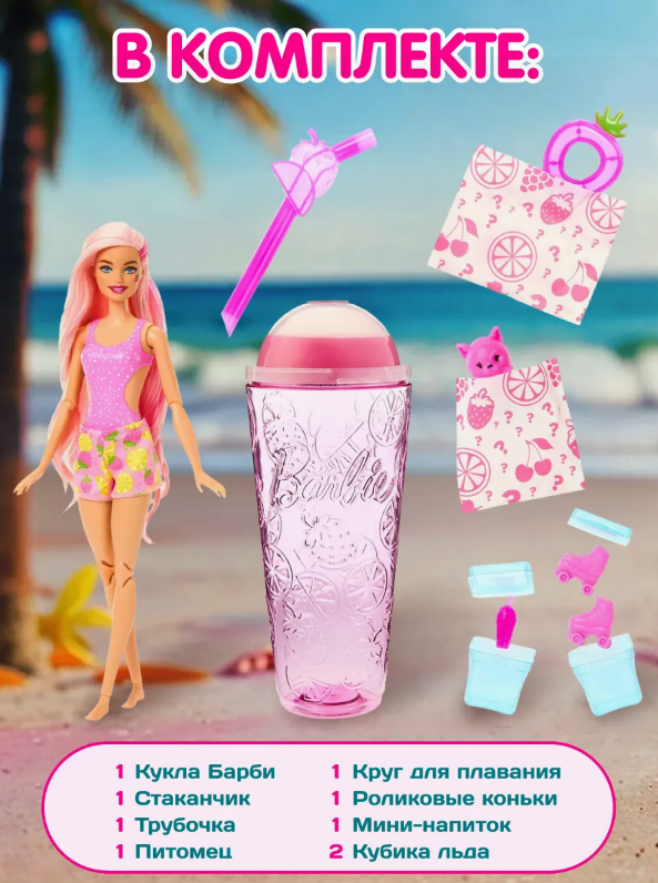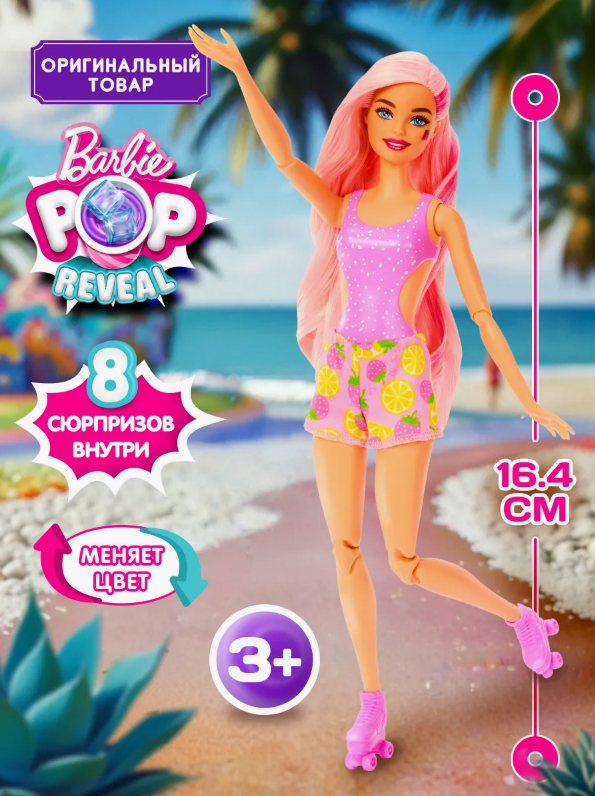 | Дополнительная информация | Куклы Barbie Pop Reveal из серии Fruit - фантастический подарок для детей от 3 лет, особенно если они любят сенсорные сюрпризы! |