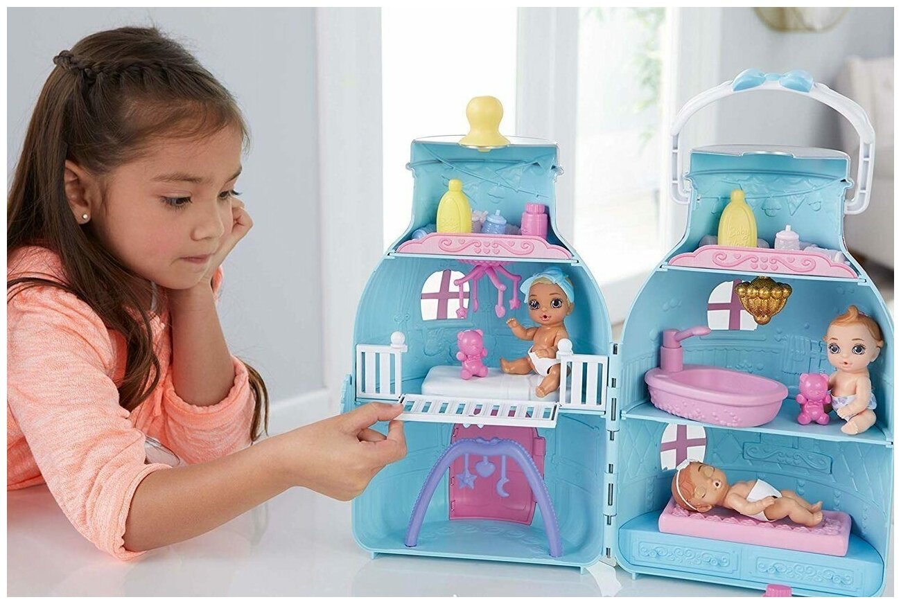 | Подробная комплектация | кукольный домик, кукла-сюрприз, кроватка, ванна, зеркальце, шампунь, игрушка, банка |