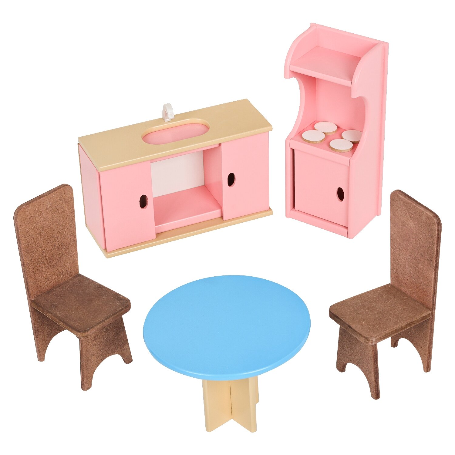 | Подробная комплектация | кукольный дом; инструкция по сборке; 16 аксессуаров: раковина, унитаз (крышка поднимается), круглый обеденный стол, 2 классических стула завершают обеденную группу, кухонная плита (дверца духового шкафа открывается), кухонная мойка (боковые дверцы гарнитура открываются), диван, журнальный столик, открытый шкафчик, часы, настольная лампа, 2 большие кровати для Барби, колыбель для куколки-ребенка (до 15 см), торшер; "уличные" качели, рассчитанные на 2-ух кукол Барби-формата |