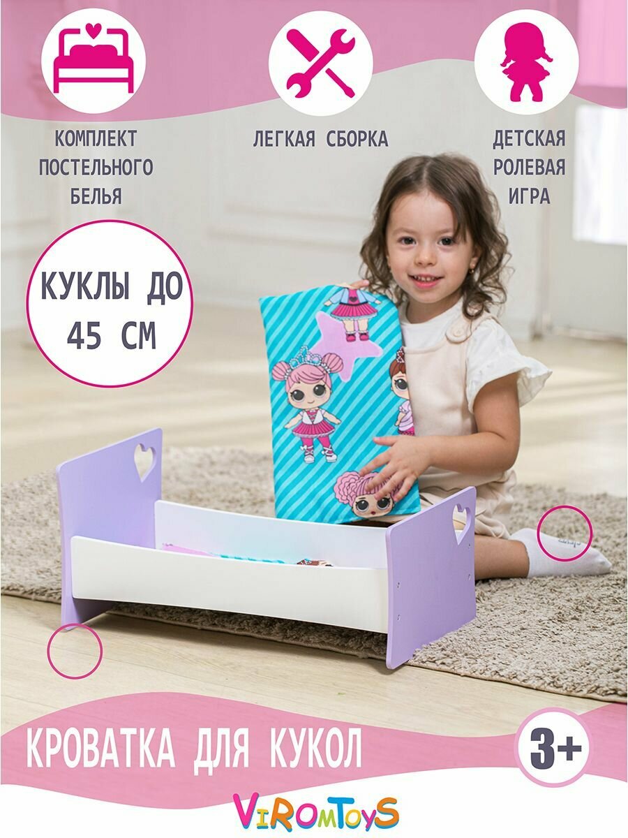 Кроватка для куклы до 44 см с бельем в комплекте интересное: