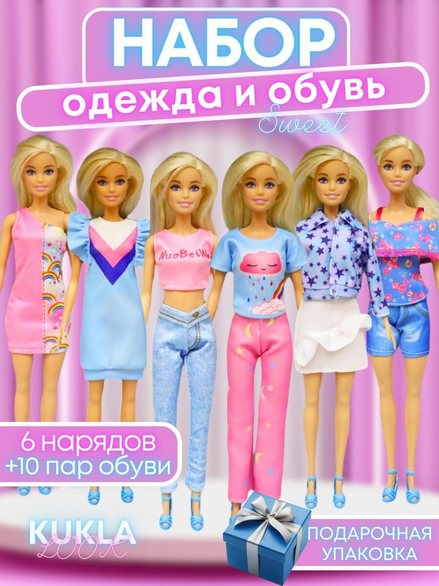 Купить Одежда для кукол барби 29см 30см, обувь платья туфли, подарочный набор 6 нарядов и 10 пар обуви