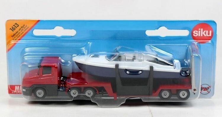 Масштабная модель Siku 1613 Тягач с катером интересное:
