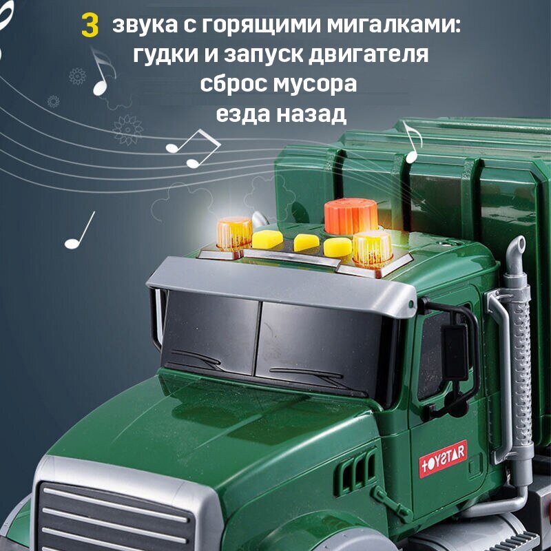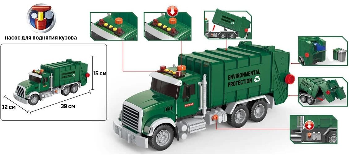 Купить Большой мусоровоз игрушечный для детей / мальчиков с задней загрузкой, длина 39 см